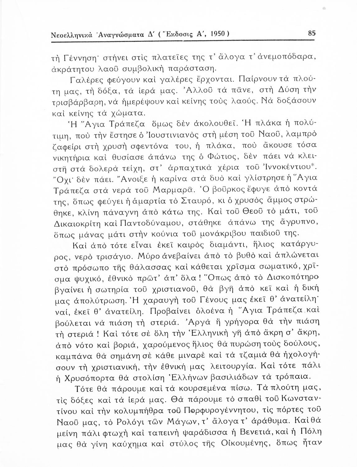 Σχολικό εγχειρίδιο Νέων Ελληνικών Γ΄ Γυμνασίου και Α' Αστικού Σχολείου που περιέχει πεζά και ποιήματα Ελλήνων συγγραφέων εμπνευσμένα από τη θρησκευτική και κοινωνική ζωή, την ελληνική μυθολογία, την αρχαία και