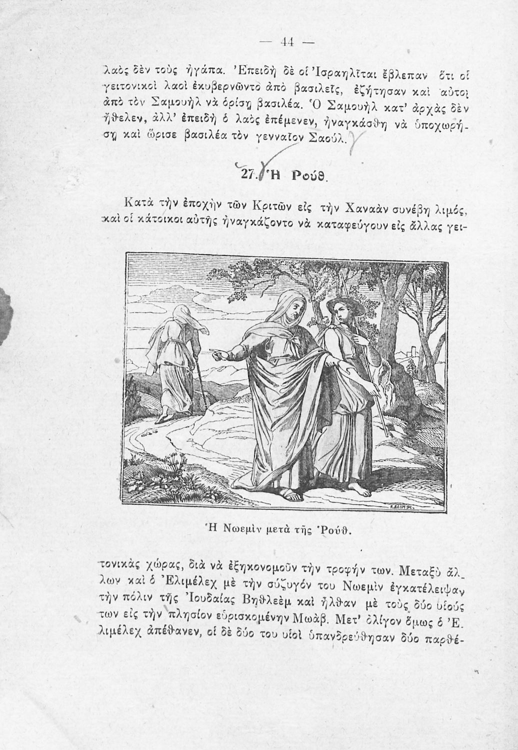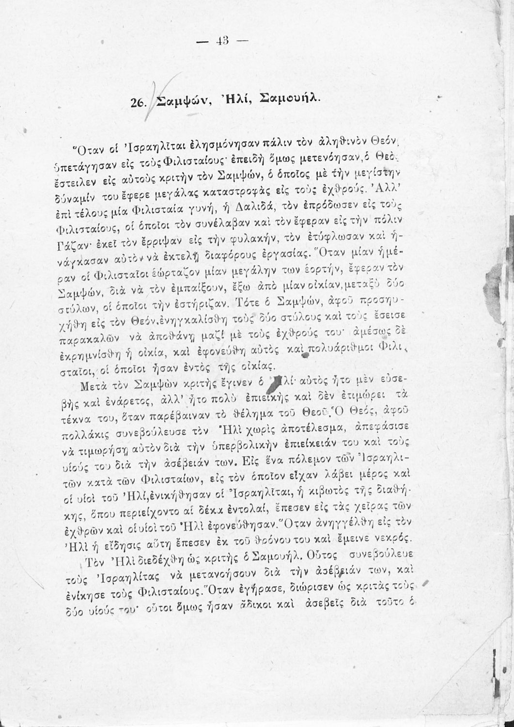 Σχολικό εγχειρίδιο Θρησκευτικών για τα Ελληνικά Σχολεία και Παρθεναγωγεία που συνιστά μία εξιστόρηση της Παλαιάς Διαθήκης από τη δημιουργία του κόσμου ως τους Μακκαβαίους.