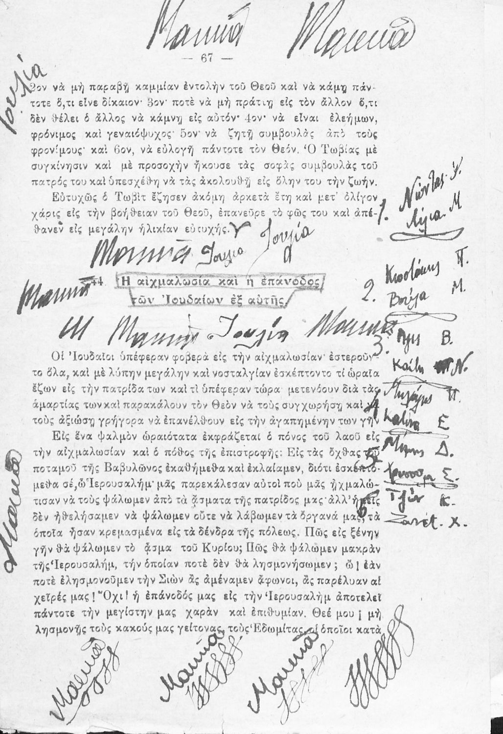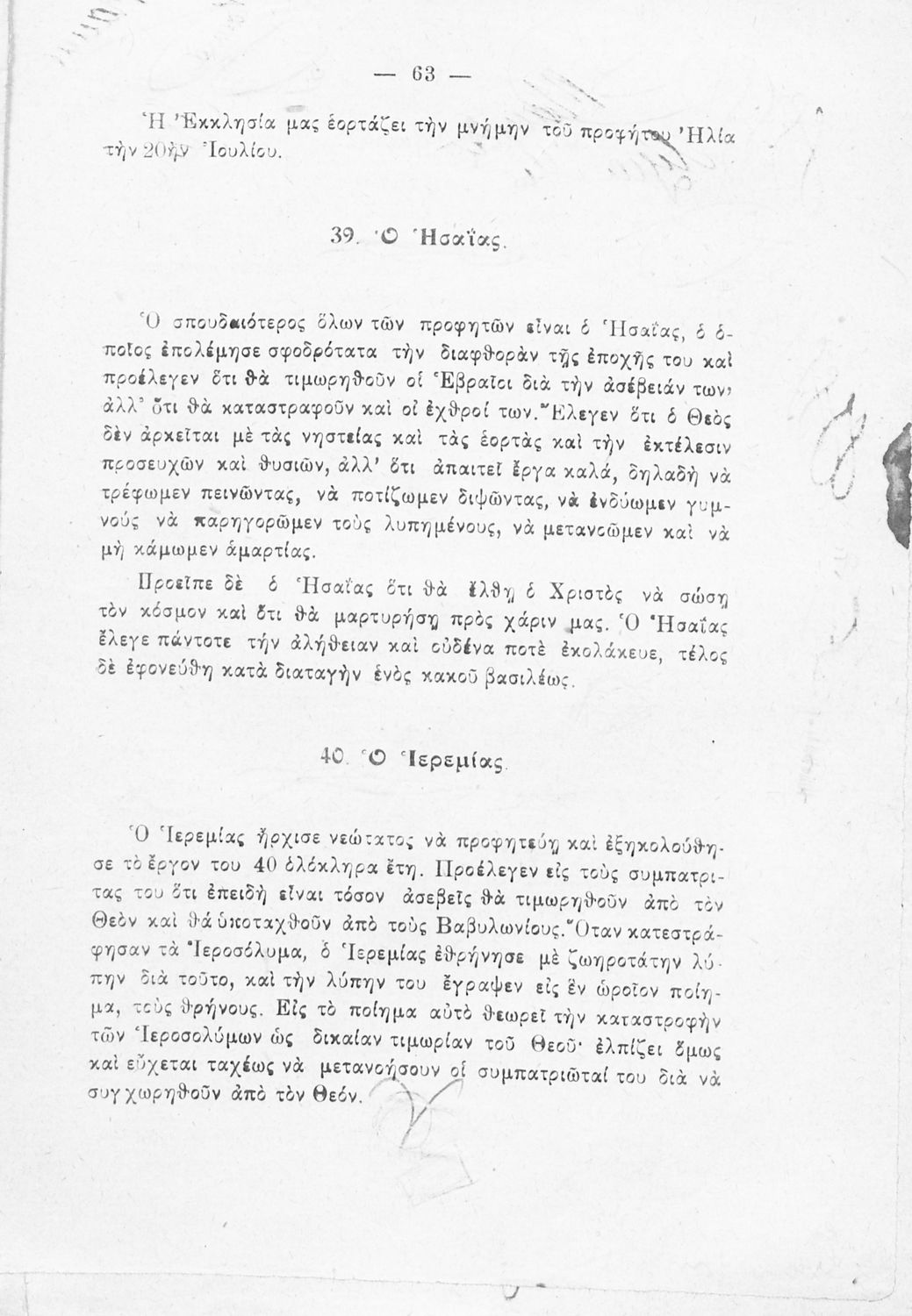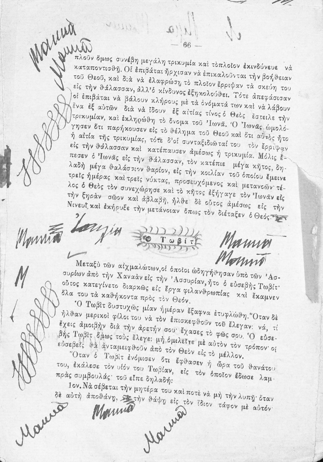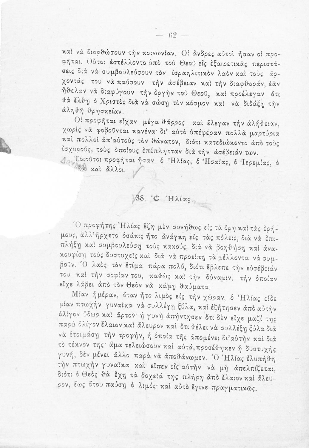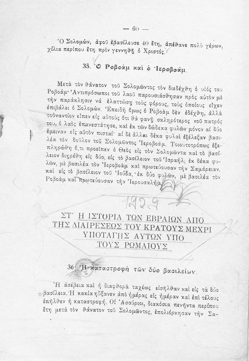 Σχολικό εγχειρίδιο Θρησκευτικών για τα Ελληνικά Σχολεία και Παρθεναγωγεία που συνιστά μία εξιστόρηση της Παλαιάς Διαθήκης από τη δημιουργία του κόσμου ως τους Μακκαβαίους.
