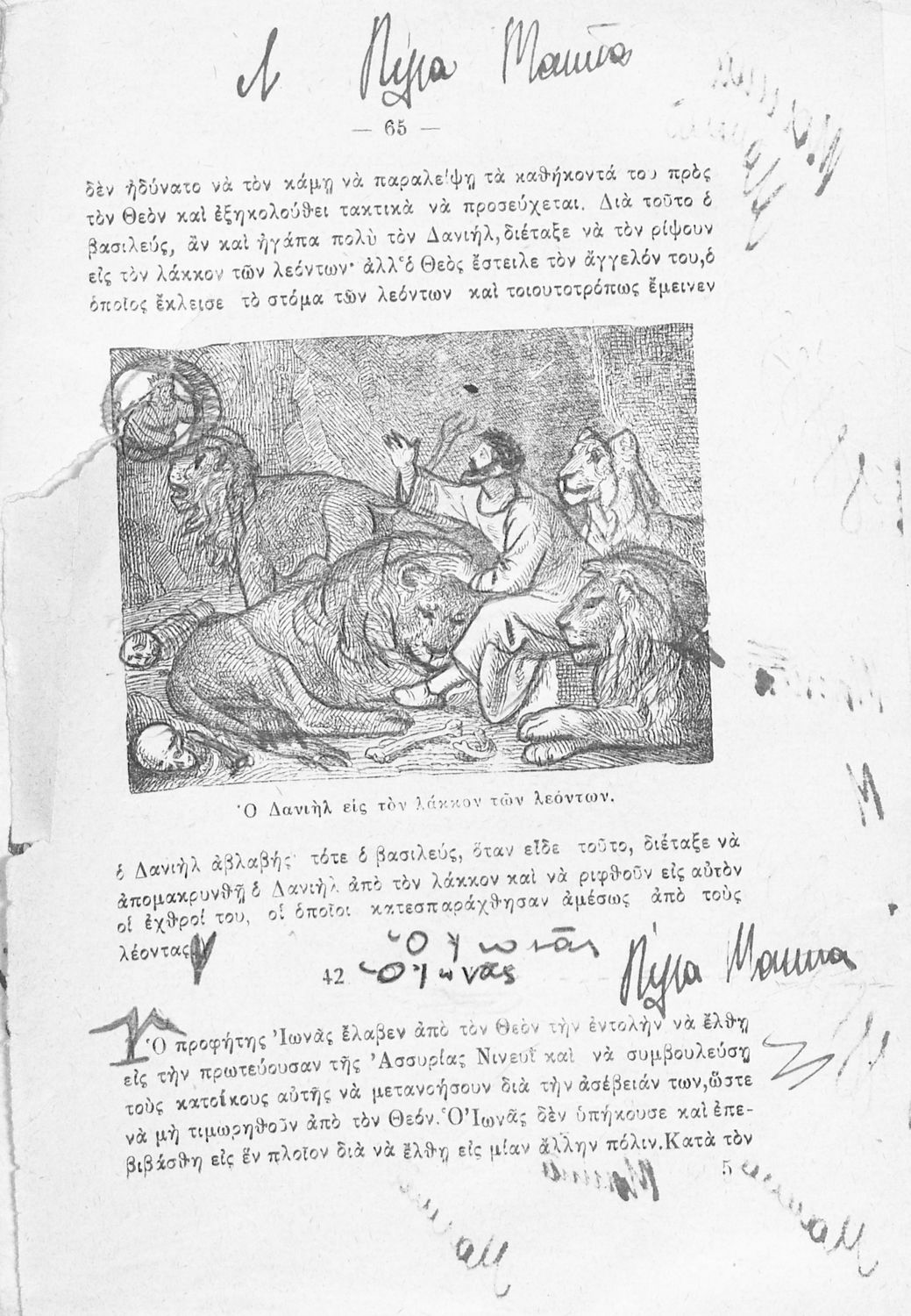 Σχολικό εγχειρίδιο Θρησκευτικών για τα Ελληνικά Σχολεία και τα Παρθεναγωγεία που αποτελεί μια εξιστόρηση της Καινής Διαθήκης από την γέννηση του Ιησού Χριστού ως το έργο των Αποστόλων