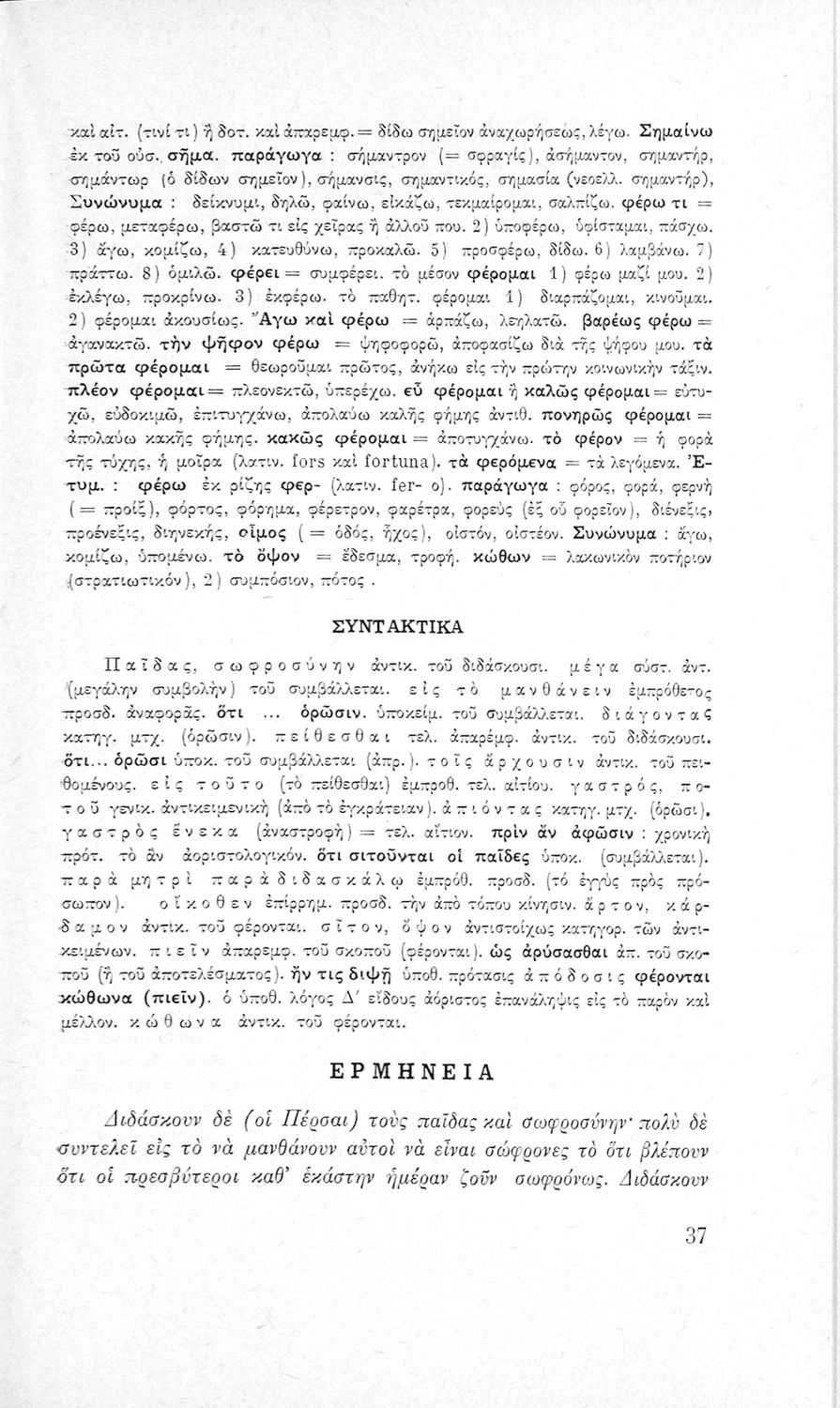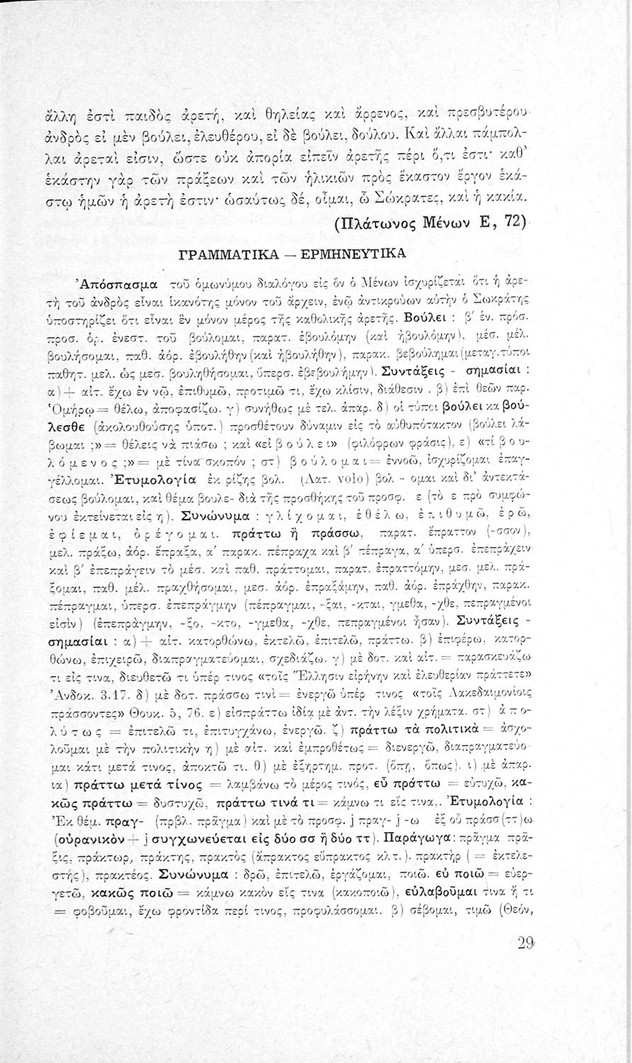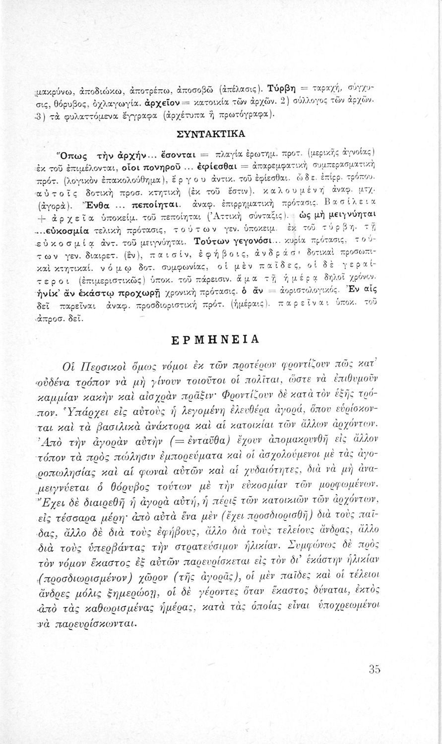 Μαθητικό βοήθημα Αρχαίων Ελληνικών που περιλαμβάνει σύντομα κείμενα από την αρχαία ελληνική γραμματεία και ερμηνευτικές, συντακτικές και γραμματικές παρατηρήσεις.