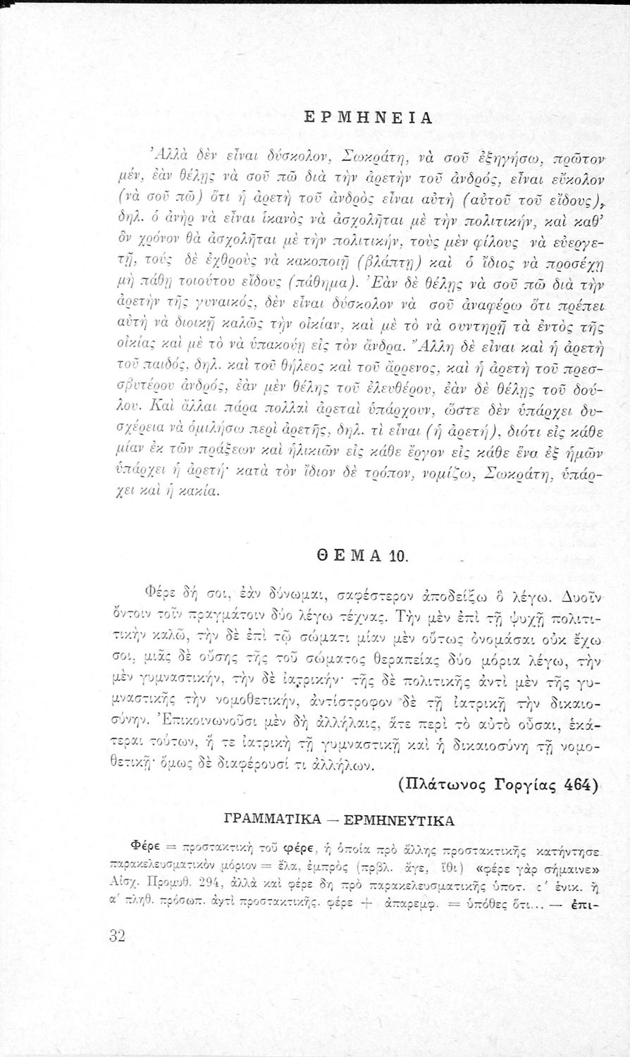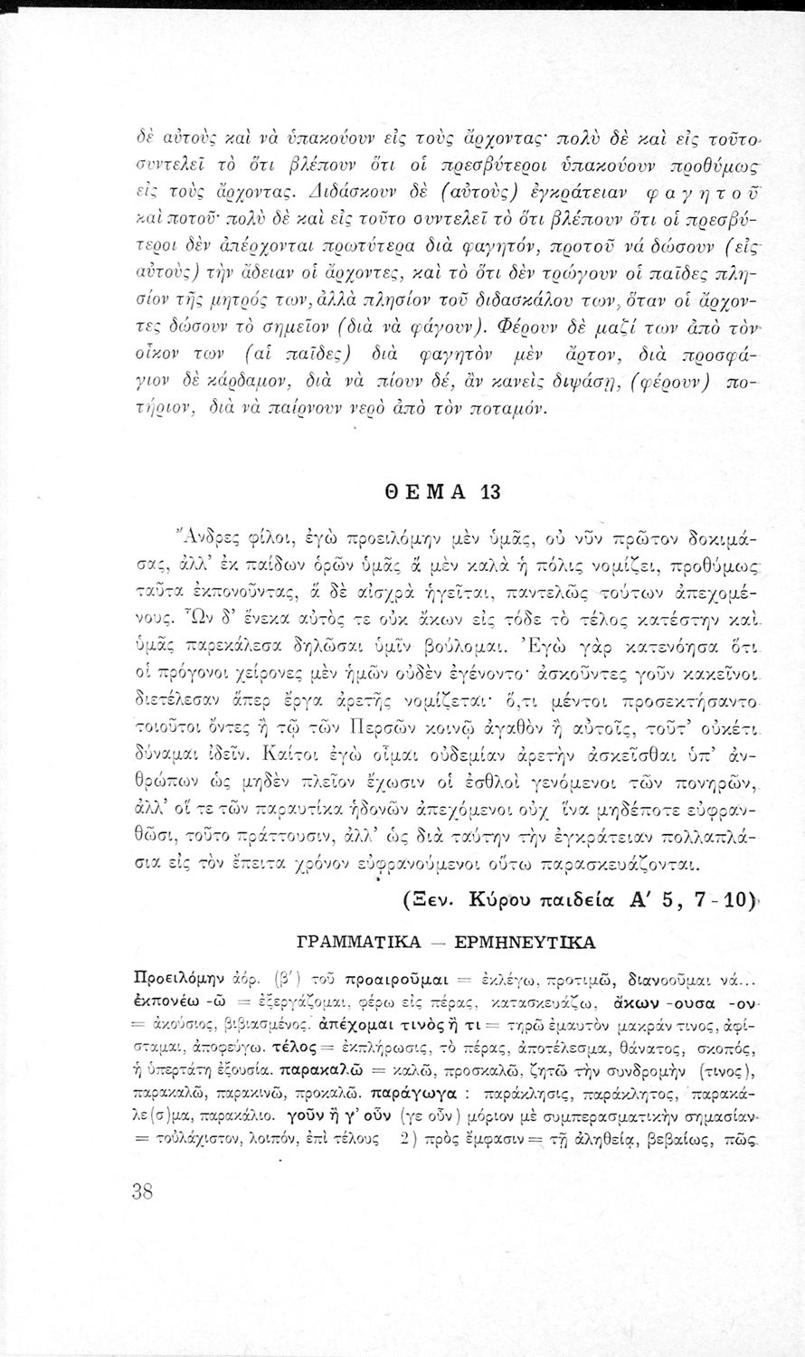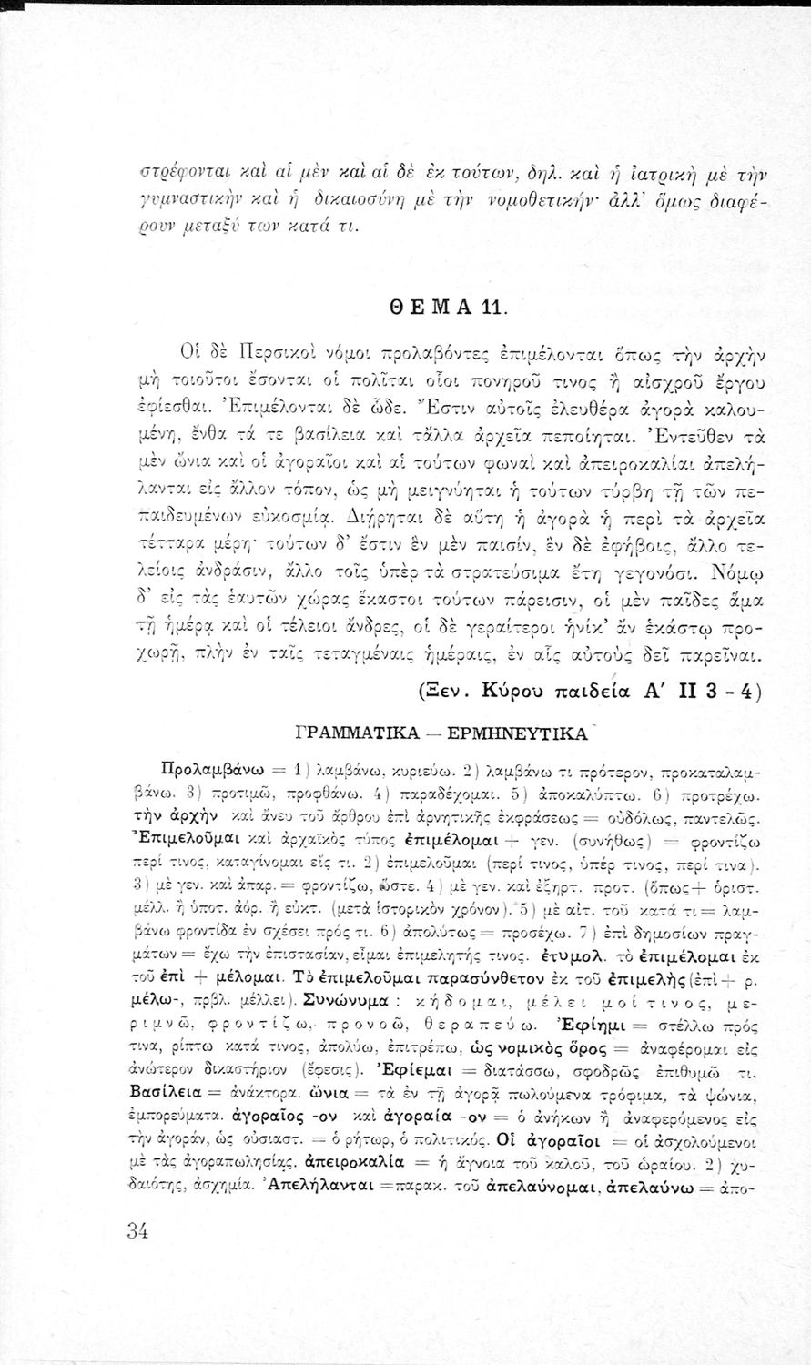 Θέματα εκ των αρχαίων Ελλήνων συγγραφέων. Κείμενον - Ερμηνεία - Νόημα - Ετυμολογία λέξεων - Συντακτικοί & ερμηνευτικοί κανόνες - Πίναξ λεξιλογίου. Προς χρήσιν των υποψηφίων των Ανωτάτων Σχολών - των μαθητών των Λυκείων - των φοιτητών Φιλολογίας και πάντω