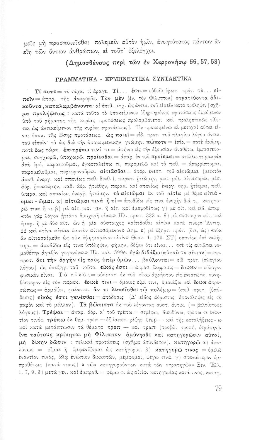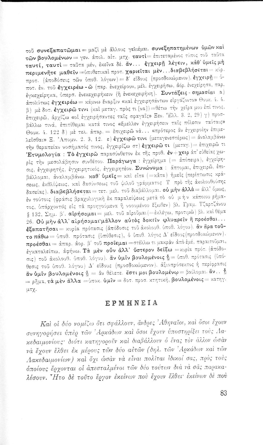 Μαθητικό βοήθημα Αρχαίων Ελληνικών που περιλαμβάνει σύντομα κείμενα από την αρχαία ελληνική γραμματεία και ερμηνευτικές, συντακτικές και γραμματικές παρατηρήσεις.