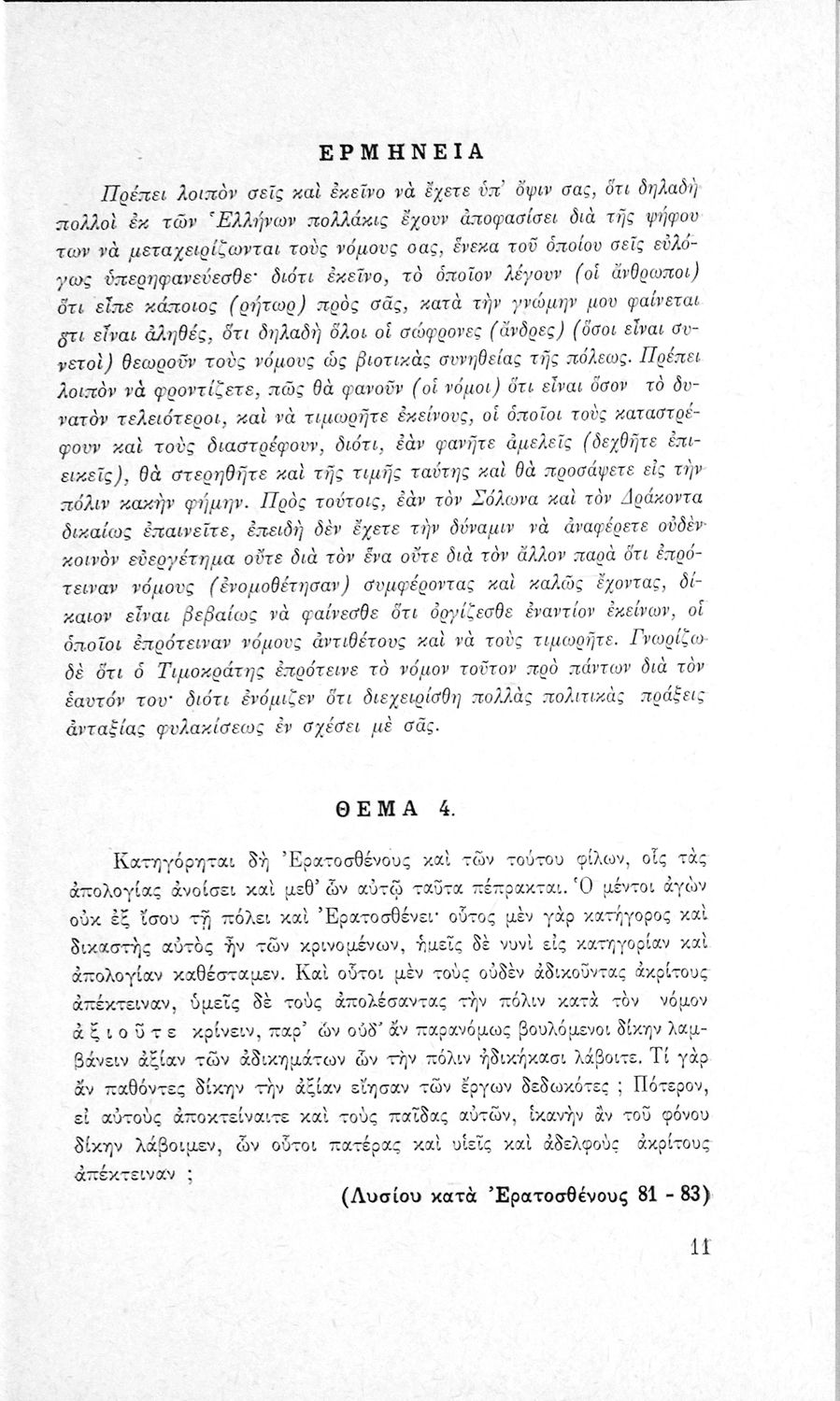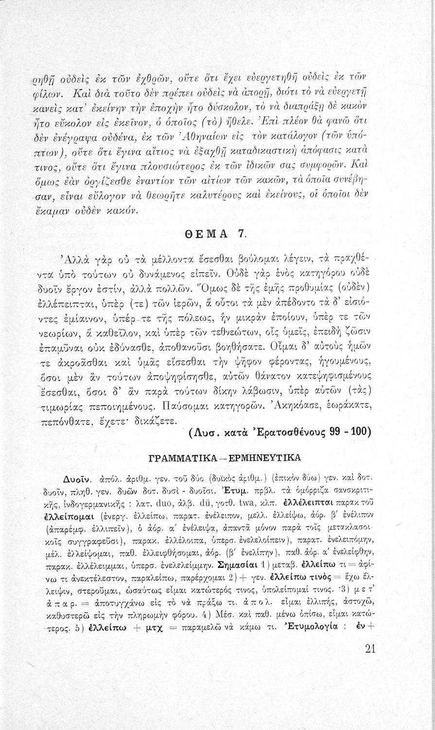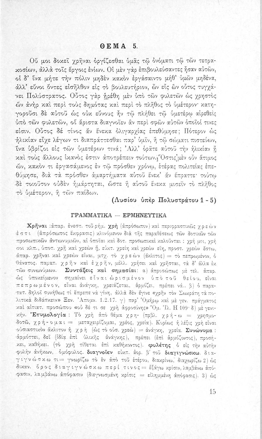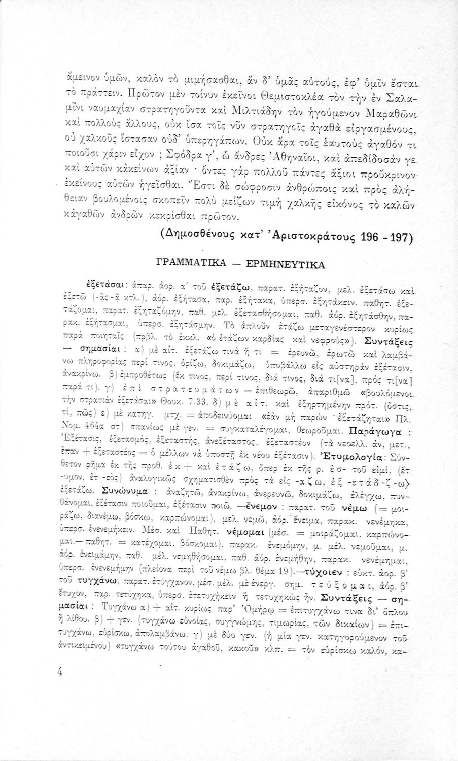 Μαθητικό βοήθημα Αρχαίων Ελληνικών που περιλαμβάνει σύντομα κείμενα από την αρχαία ελληνική γραμματεία και ερμηνευτικές, συντακτικές και γραμματικές παρατηρήσεις.