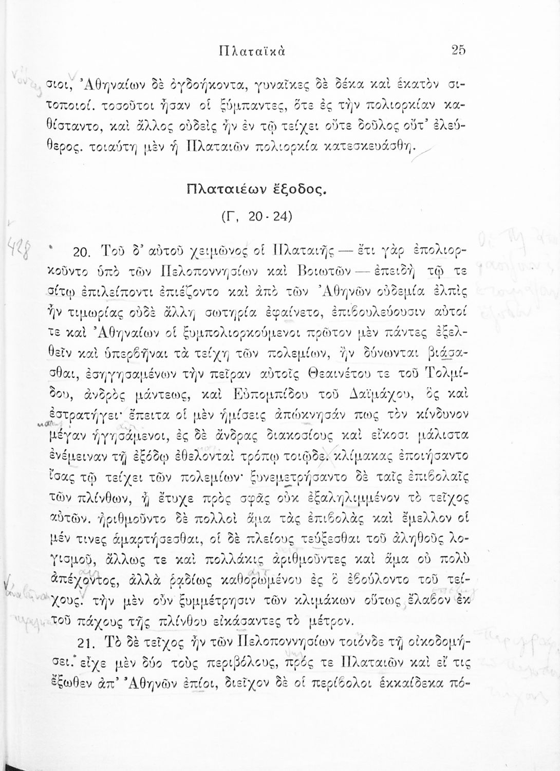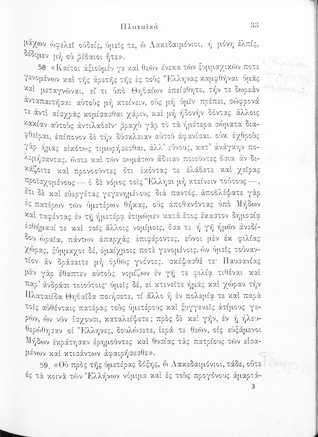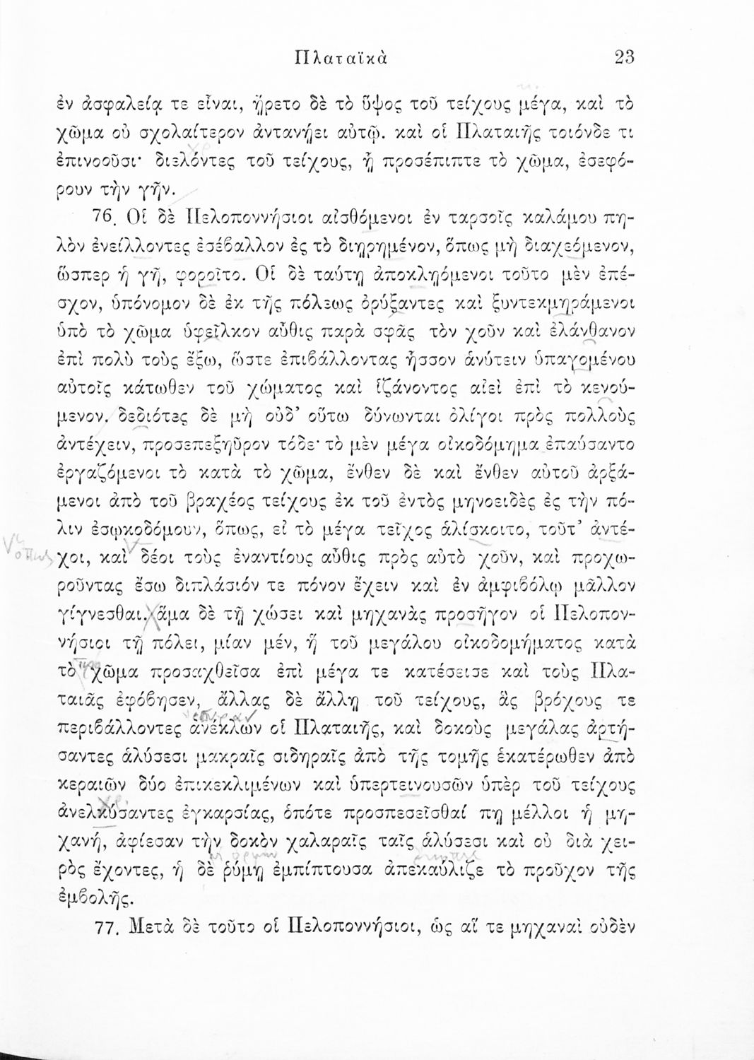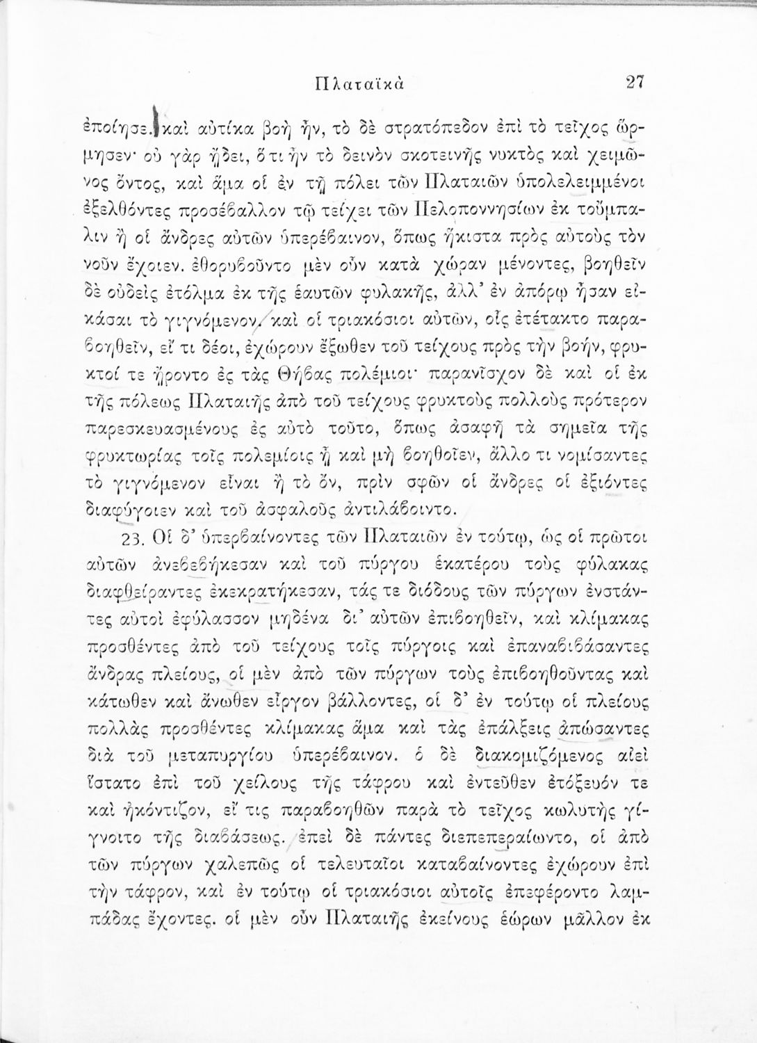 Σχολικό εγχειρίδιο Αρχαίων Ελληνικών για τις Δ΄, Ε΄ και ΣΤ΄ Γυμνασίου παλαιού τύπου που περιλαμβάνει σύντομο βιογραφικό σημείωμα του Θουκυδίδη, περιγραφή του ιστορικού πλαισίου, αποσπάσματα από τα Πλαταϊκά, τα