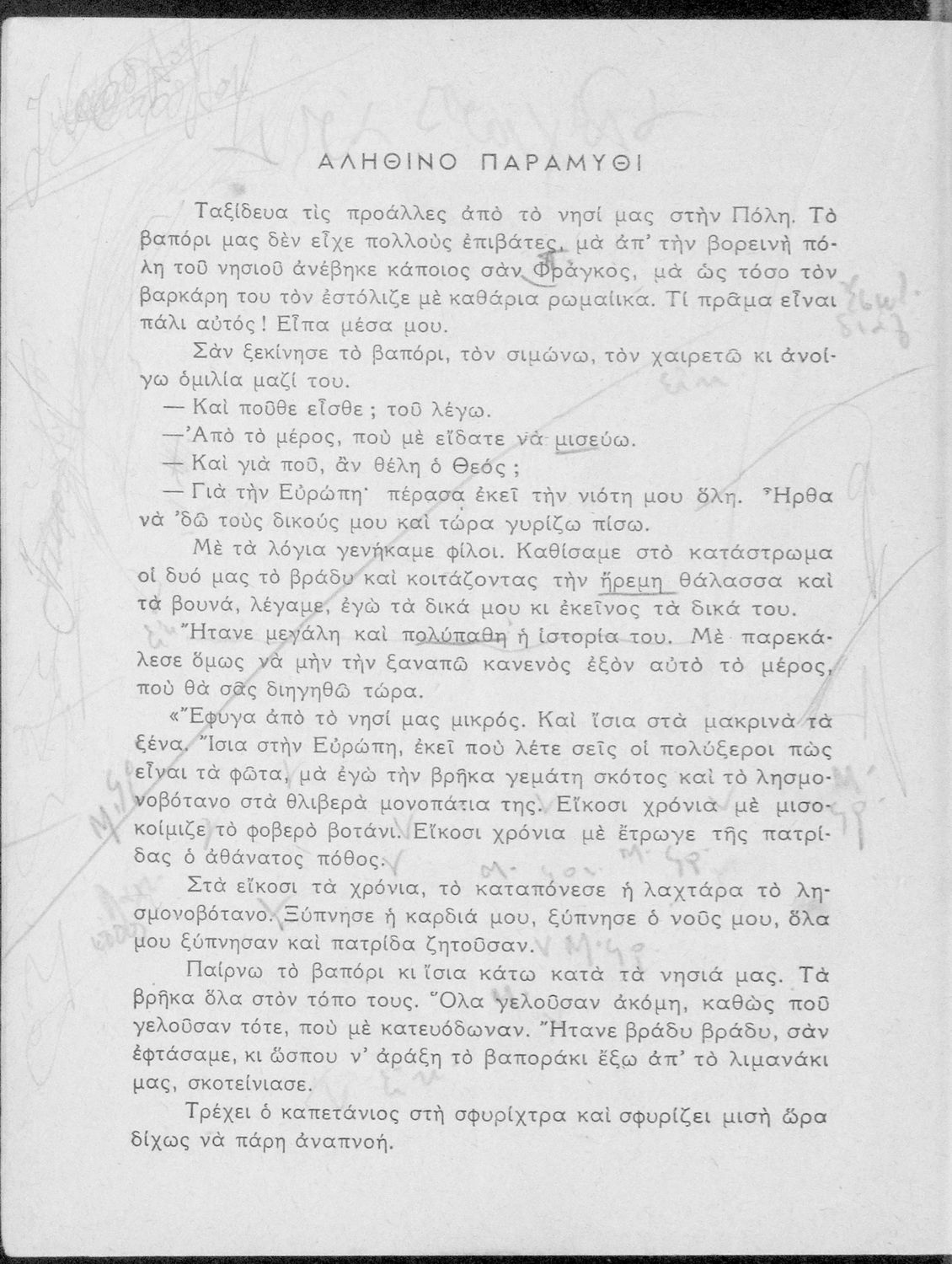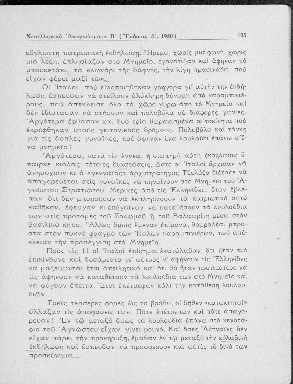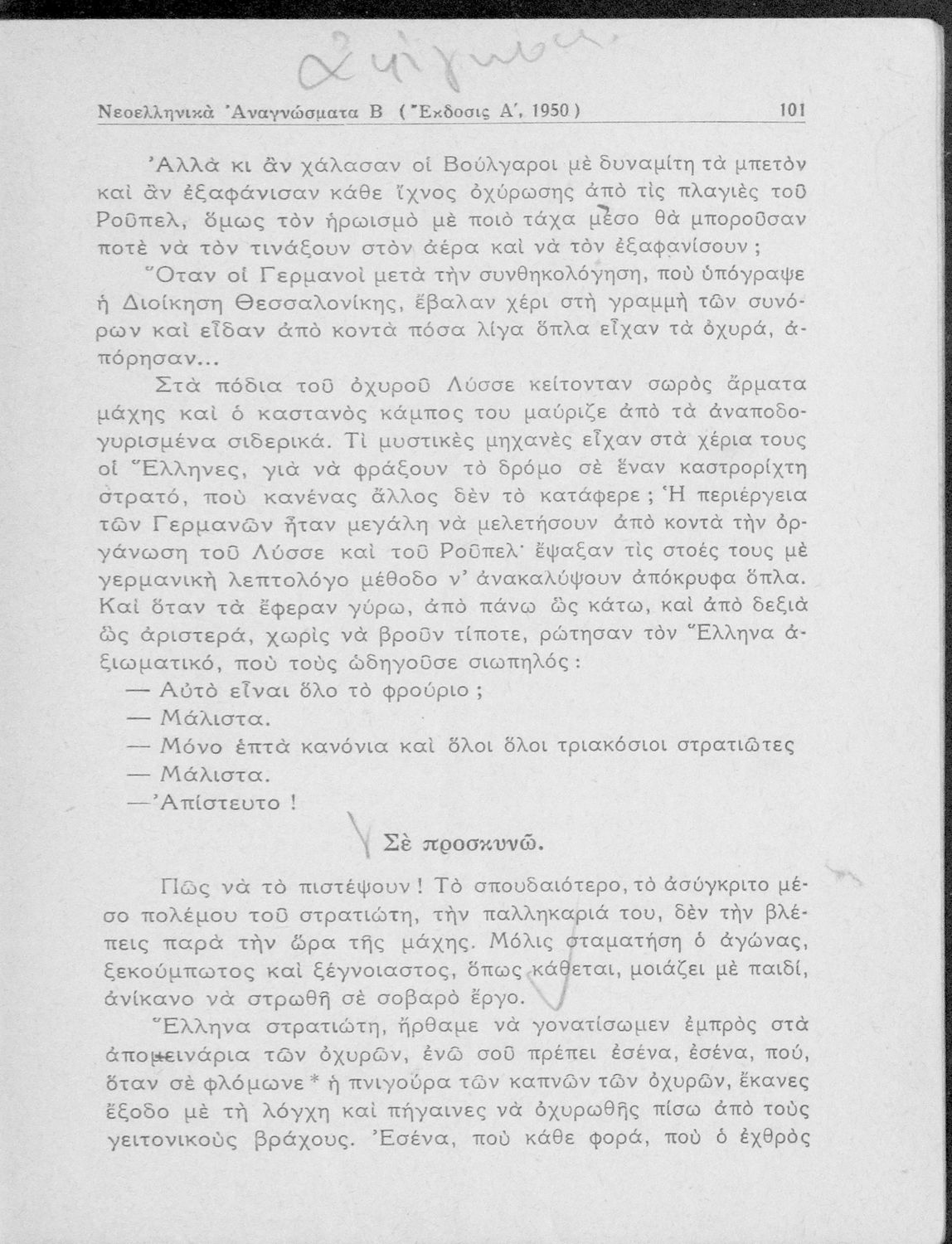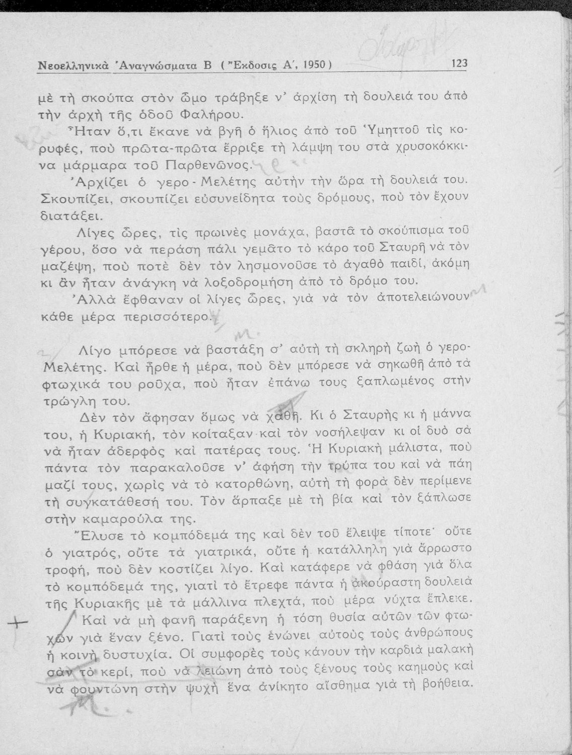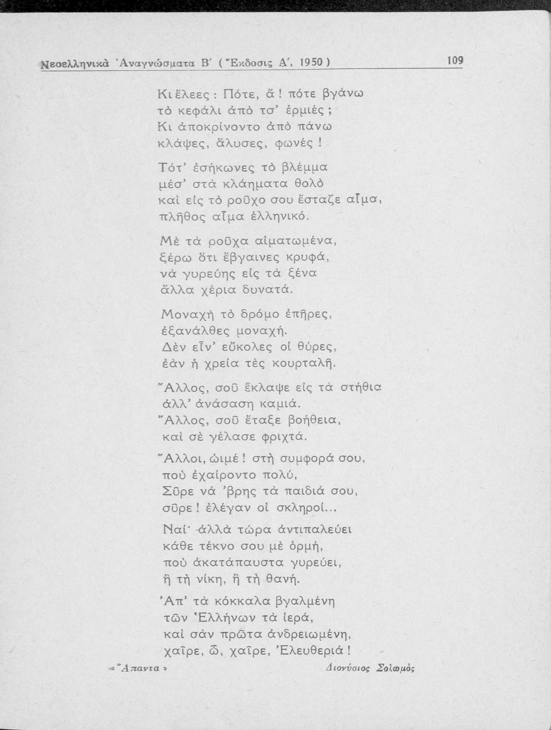 Σχολικό εγχειρίδιο Νέων Ελληνικών Δ΄ Γυμνασίου και Β΄ Αστικού Σχολείου που περιέχει πεζά και ποιήματα Ελλήνων συγγραφέων εμπνευσμένα από τη θρησκευτική και κοινωνική ζωή, την ελληνική μυθολογία, την αρχαία και