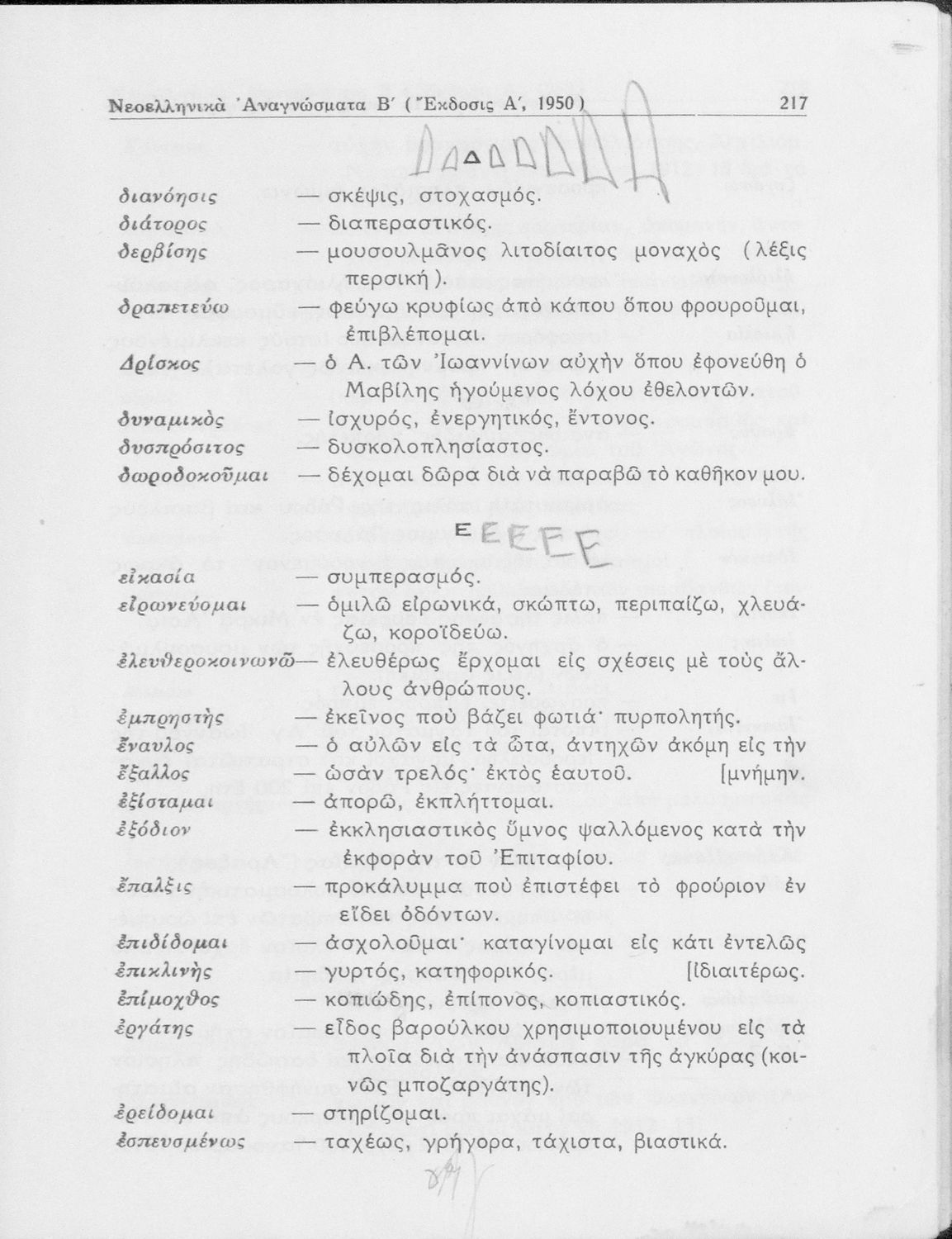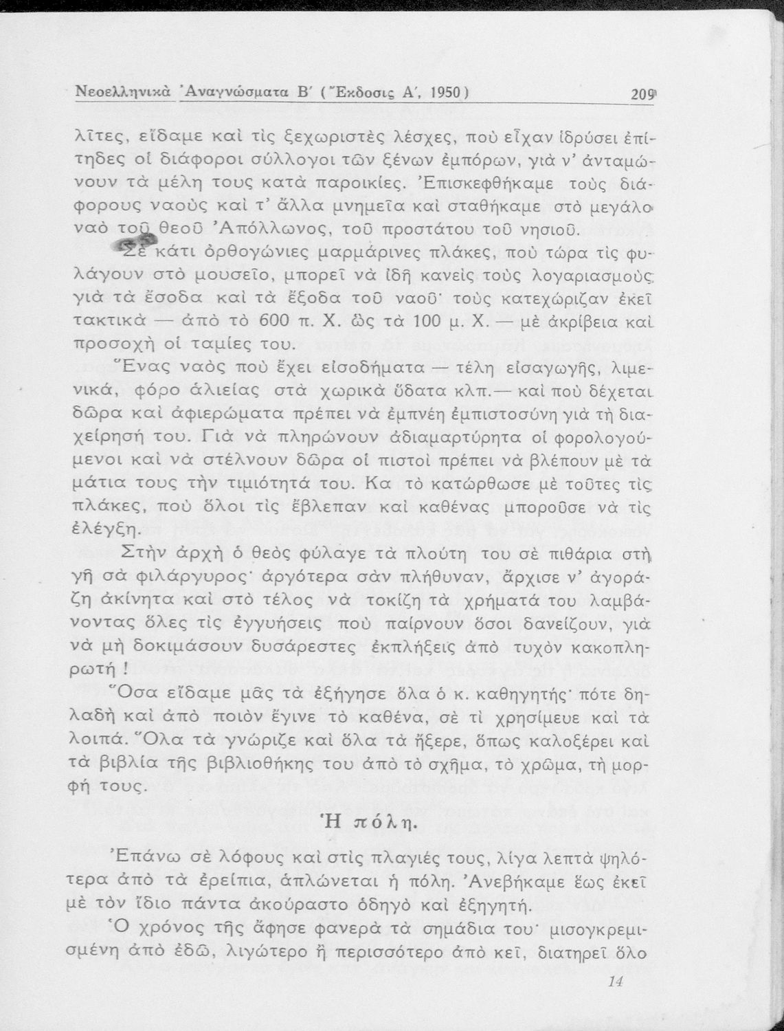 Σχολικό εγχειρίδιο Νέων Ελληνικών Δ΄ Γυμνασίου και Β΄ Αστικού Σχολείου που περιέχει πεζά και ποιήματα Ελλήνων συγγραφέων εμπνευσμένα από τη θρησκευτική και κοινωνική ζωή, την ελληνική μυθολογία, την αρχαία και