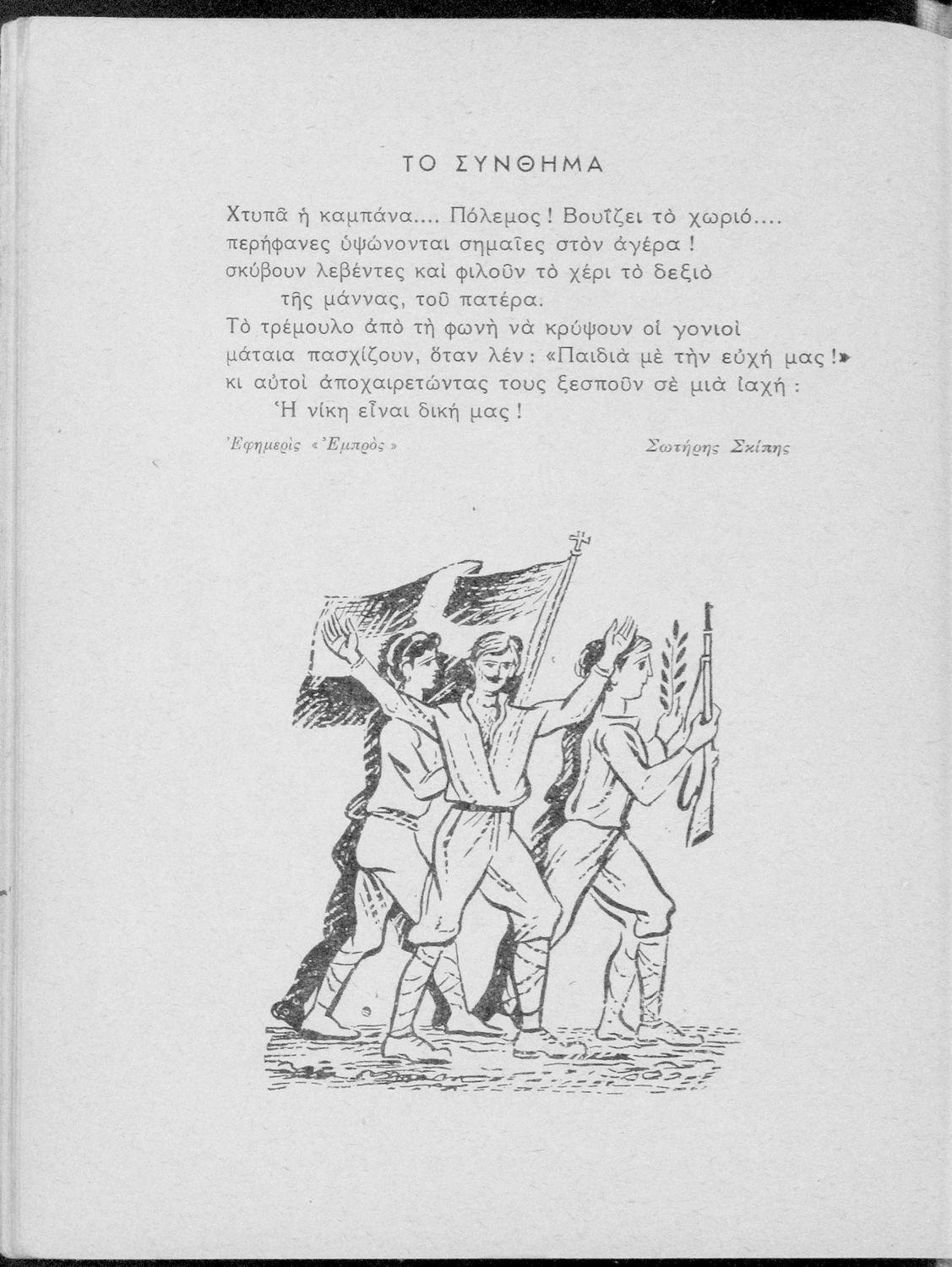 Σχολικό εγχειρίδιο Νέων Ελληνικών Δ΄ Γυμνασίου και Β΄ Αστικού Σχολείου που περιέχει πεζά και ποιήματα Ελλήνων συγγραφέων εμπνευσμένα από τη θρησκευτική και κοινωνική ζωή, την ελληνική μυθολογία, την αρχαία και