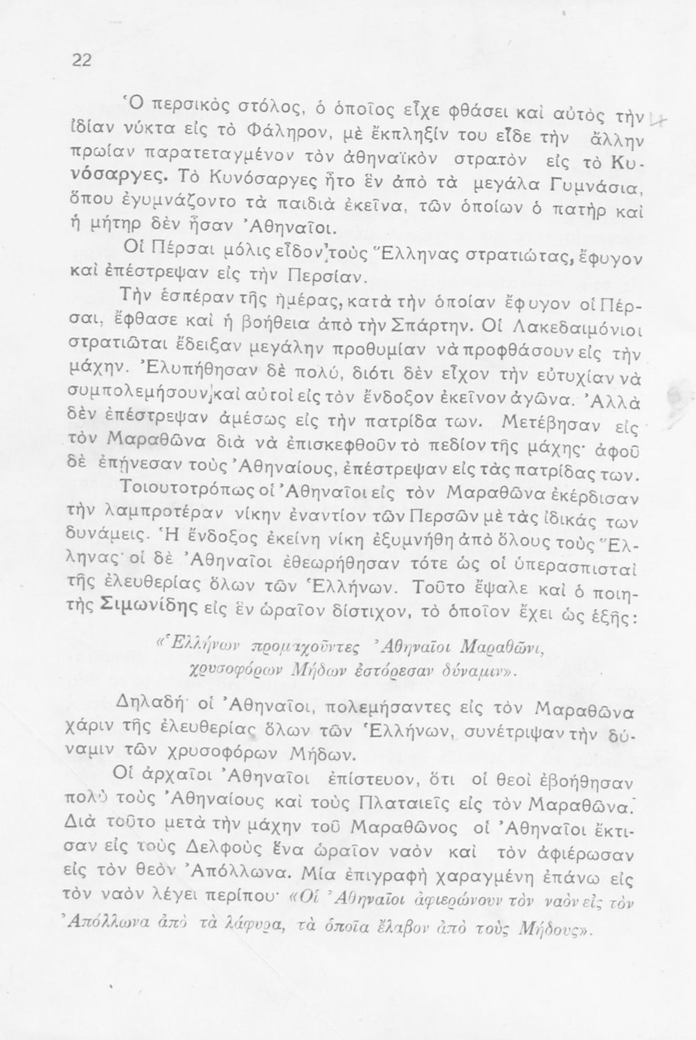 Βαθμίδα εκπαίδευσης: Δευτεροβάθμια Τάξη: Β' Γυμνασίου Μάθημα: Ιστορία Γλώσσα: Απλή καθαρεύουσα Παρουσίαση περιεχομένου: Σχολικό εγχειρίδιο Ιστορίας Β΄ Γυμνασίου που καλύπτει την περίοδο από τους Περσικούς Πολέμους ως τη μάχη της Χαιρώνειας. |