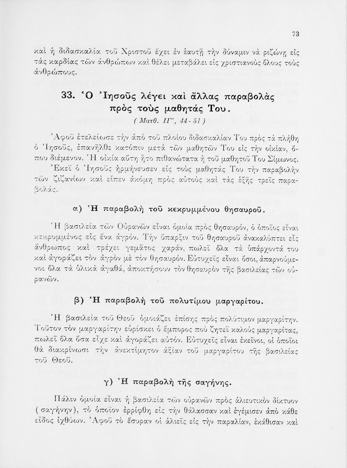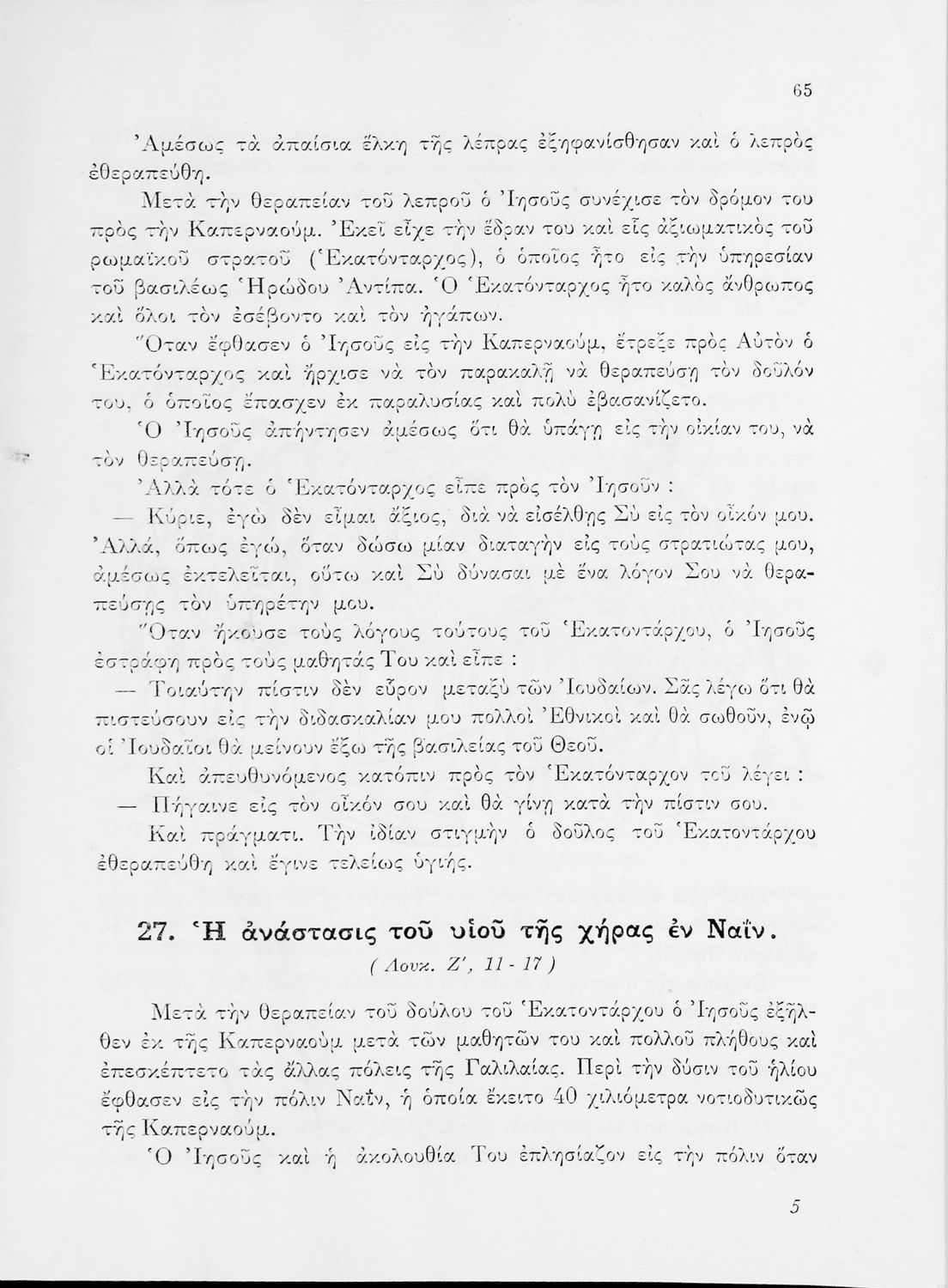 Σχολικό εγχειρίδιο Θρησκευτικών για τα Ελληνικά Σχολεία και τα Παρθεναγωγεία που περιλαμβάνει την ιστορία της Καινής Διαθήκης από τον Ευαγγελισμό της Θεοτόκου μέχρι την ανάληψη του Ιησού Χριστού