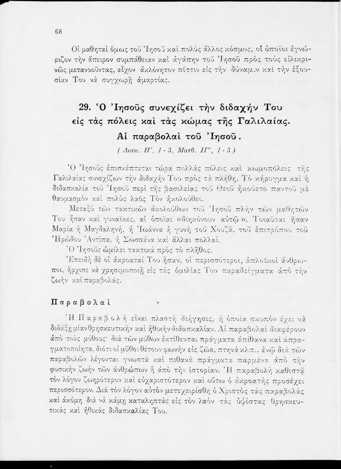 Σχολικά εγχειρίδια Θρησκευτικών για τα Ελληνικά Σχολεία και τα Παρθεναγωγεία που περιλαμβάνει την ιστορία της Καινής Διαθήκης από τον Ευαγγελισμό της Θεοτόκου μέχρι τη δράση των Αποστόλων.