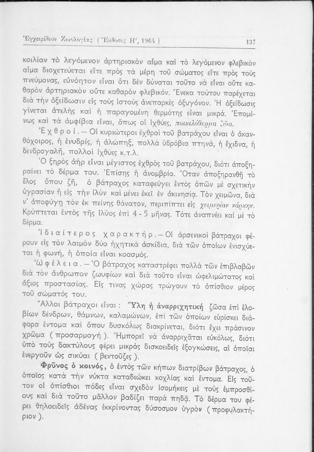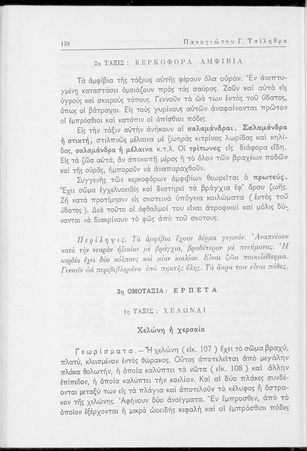 Κωδικός αναγνώρισης: 05-00207 Τίτλος: Εγχειρίδιον ζωολογίας. Διά την Γ΄ τάξιν των Γυμνασίων Συγγραφέας: Παναγιώτης Γ. Τσιλήθρας Εικονογράφος: Α. Τάσσος Μέγεθος και υπόστρωμα: Σχολικό εγχειρίδιο, σκληρό εξώφυλλο, 253 σελίδες. Σκίτσα (ασπρόμαυρα). |
