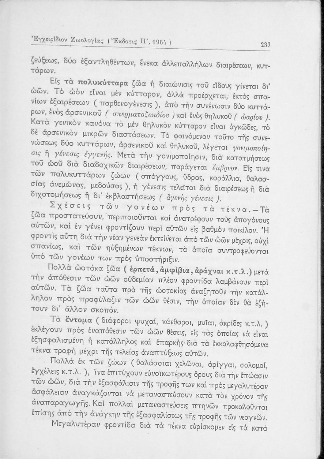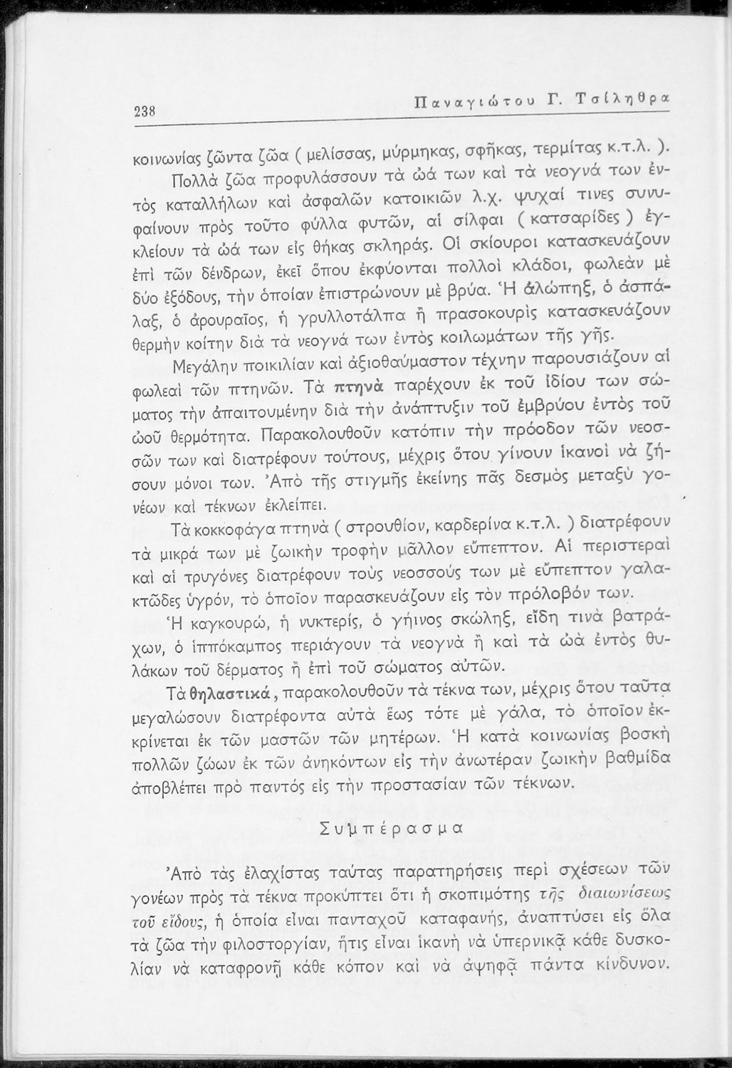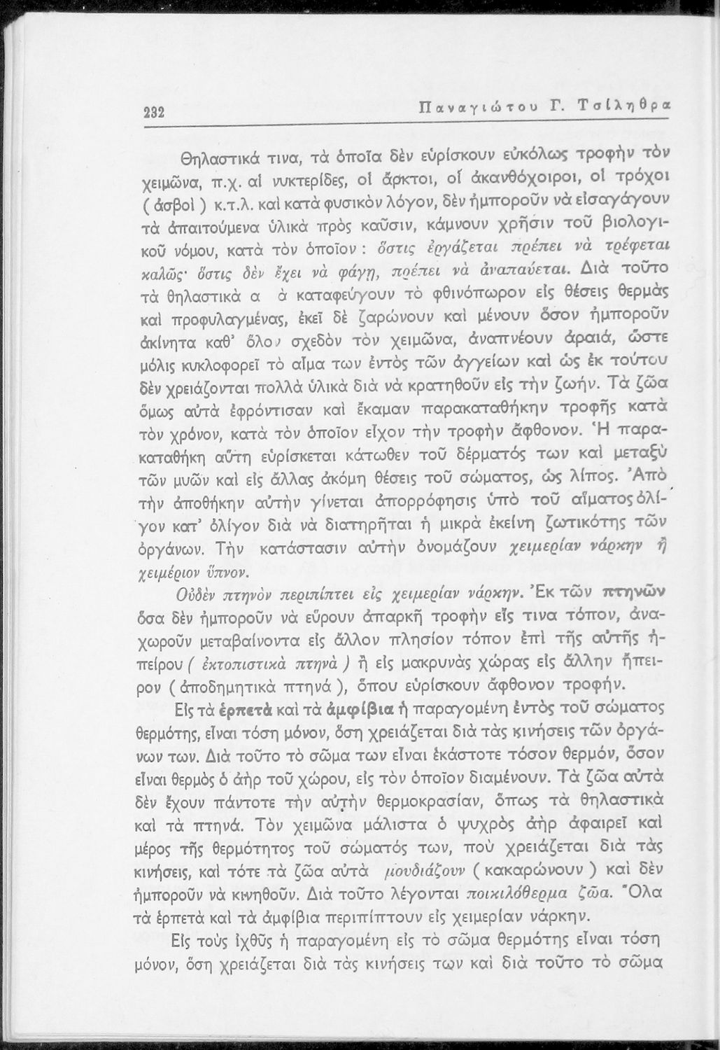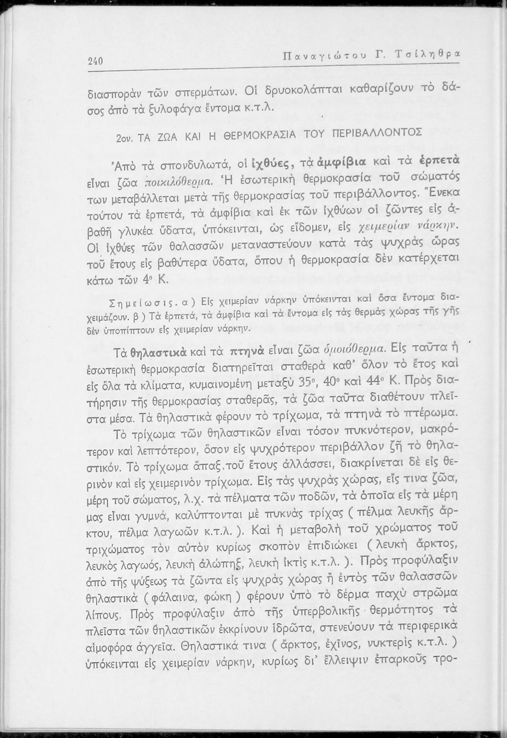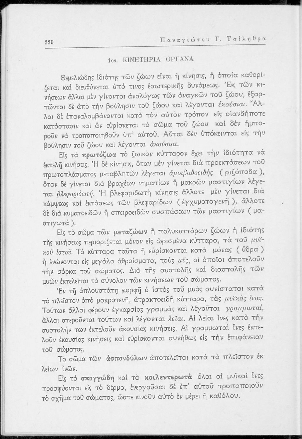 Κωδικός αναγνώρισης: 05-00207 Τίτλος: Εγχειρίδιον ζωολογίας. Διά την Γ΄ τάξιν των Γυμνασίων Συγγραφέας: Παναγιώτης Γ. Τσιλήθρας Εικονογράφος: Α. Τάσσος Μέγεθος και υπόστρωμα: Σχολικό εγχειρίδιο, σκληρό εξώφυλλο, 253 σελίδες. Σκίτσα (ασπρόμαυρα). |