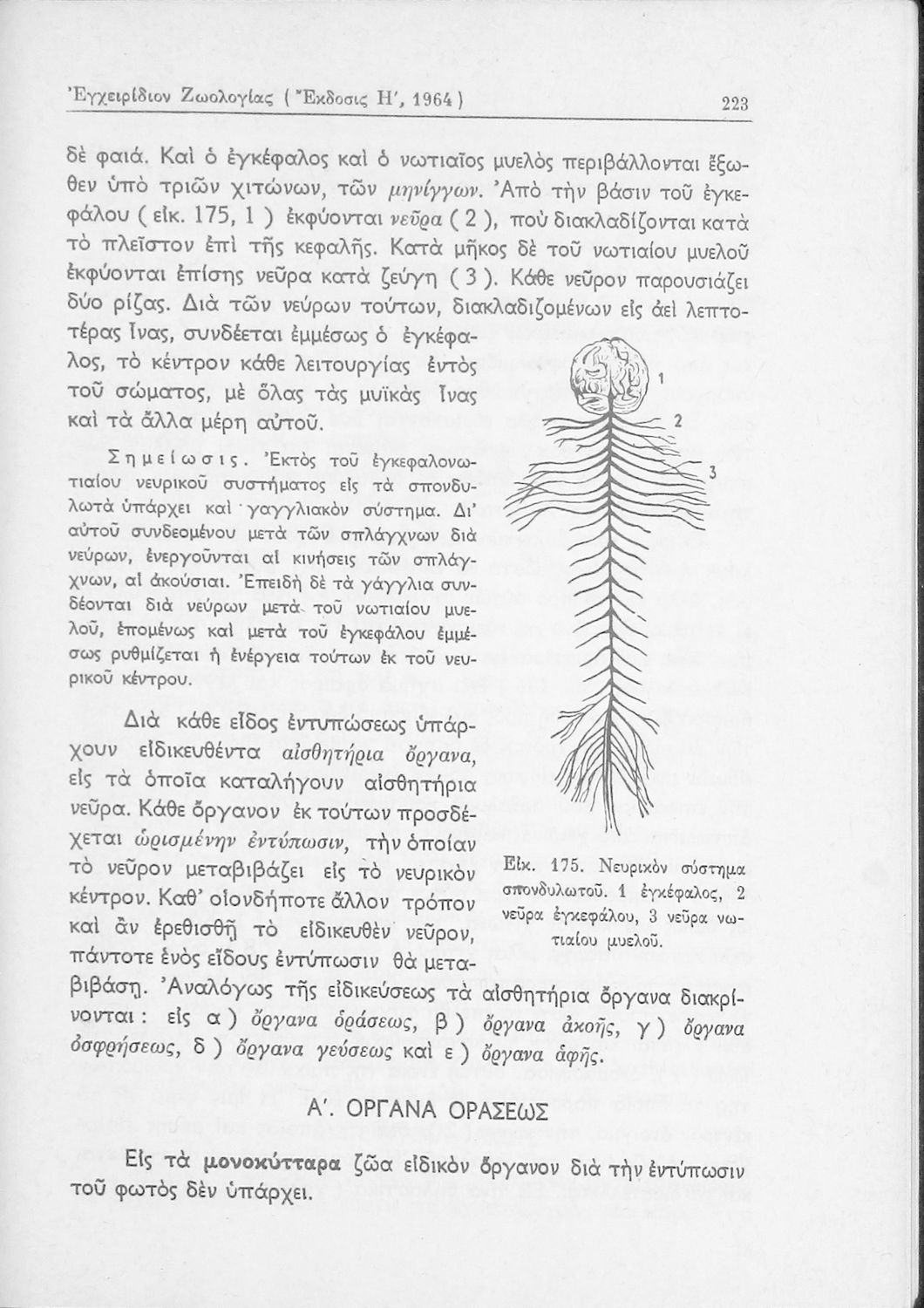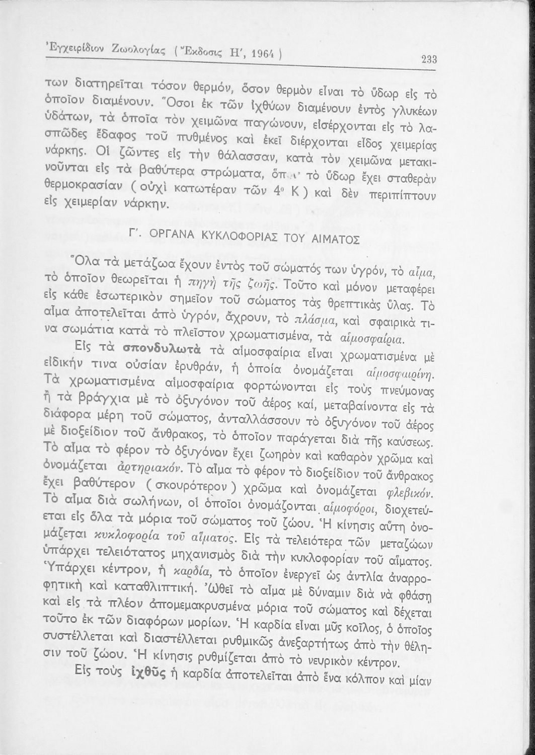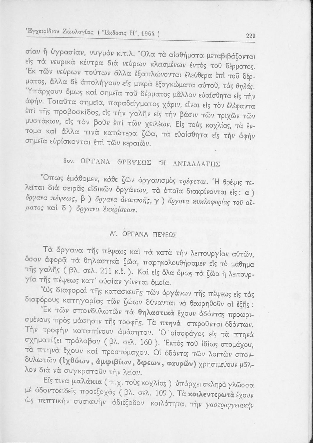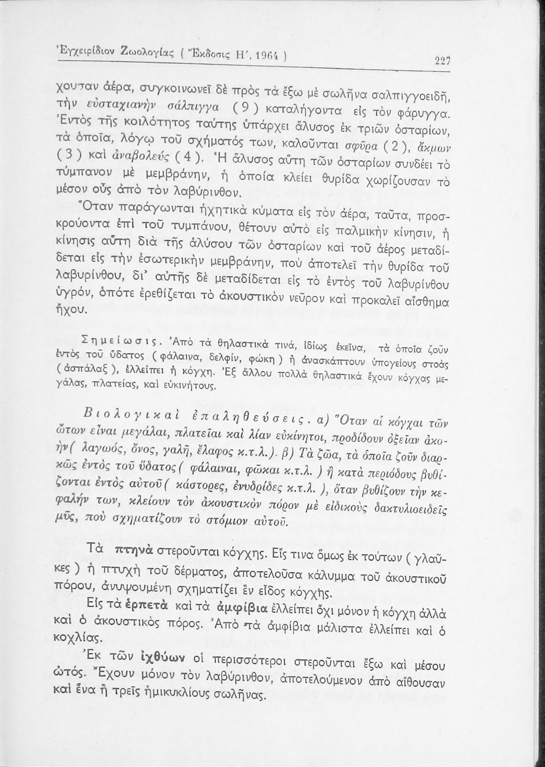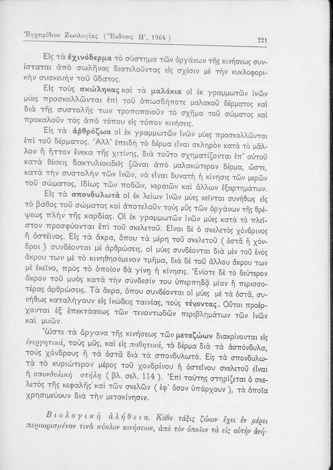 Σχολικό εγχειρίδιο Ζωολογίας για τη Γ΄ Γυμνασίου που παρουσιάζει τα διάφορα ζώα ανάλογα με την συνομοταξία στην οποία ανήκουν.