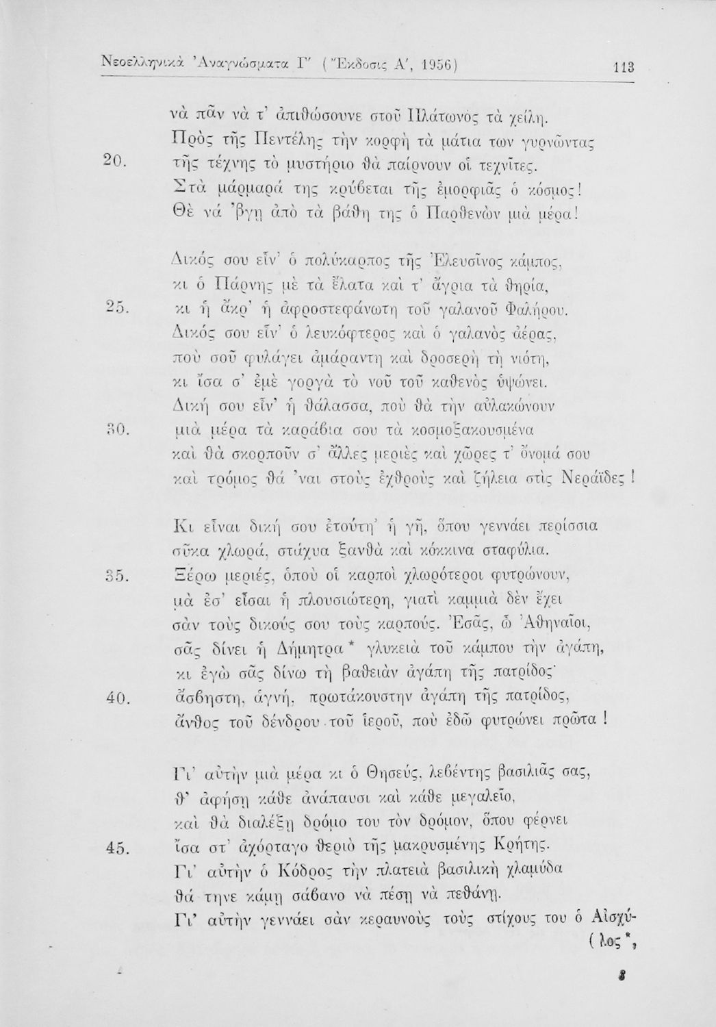 Σχολικό εγχειρίδιο Νέων Ελληνικών Γ΄ Γυμνασίου που περιέχει ποιήματα και πεζά Ελλήνων συγγραφέων εμπνευσμένα από τη θρησκευτική, οικογενειακή και κοινωνική ζωή, την σύγχρονή ελληνική ιστορία και την ελληνική φύση. Περιέχει παράρτημα με βιογραφίες των συγγραφέων και λεξιλόγιο.