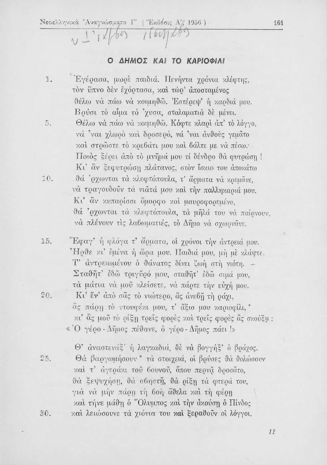 Σχολικό εγχειρίδιο Νέων Ελληνικών Γ΄ Γυμνασίου που περιέχει ποιήματα και πεζά Ελλήνων συγγραφέων εμπνευσμένα από τη θρησκευτική, οικογενειακή και κοινωνική ζωή, την σύγχρονή ελληνική ιστορία και την ελληνική ...