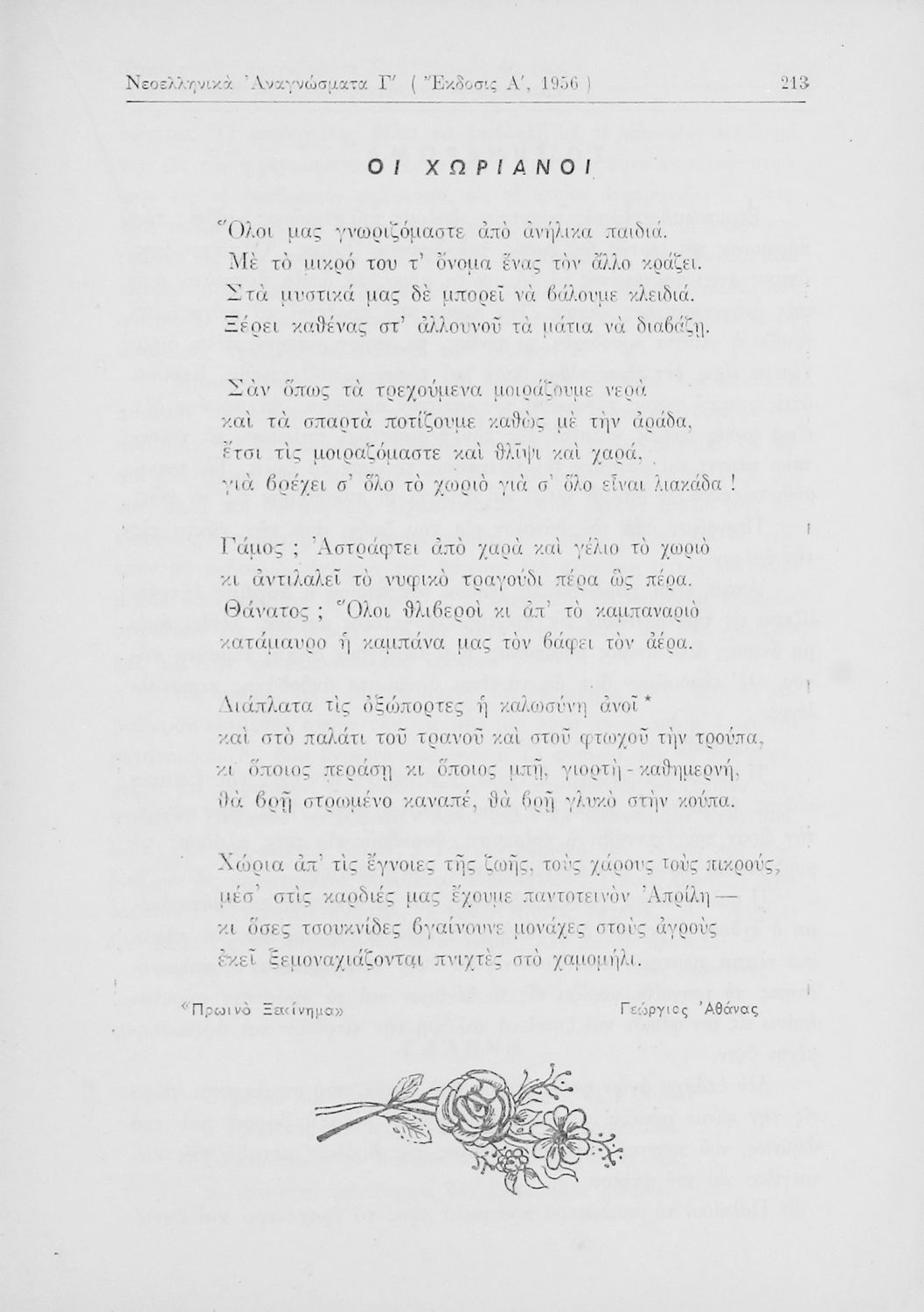 Σχολικό εγχειρίδιο Νέων Ελληνικών Γ΄ Γυμνασίου που περιέχει ποιήματα και πεζά Ελλήνων συγγραφέων εμπνευσμένα από τη θρησκευτική, οικογενειακή και κοινωνική ζωή, την σύγχρονή ελληνική ιστορία και την ελληνική φύση. Περιέχει παράρτημα με βιογραφίες των συγγραφέων και λεξιλόγιο.