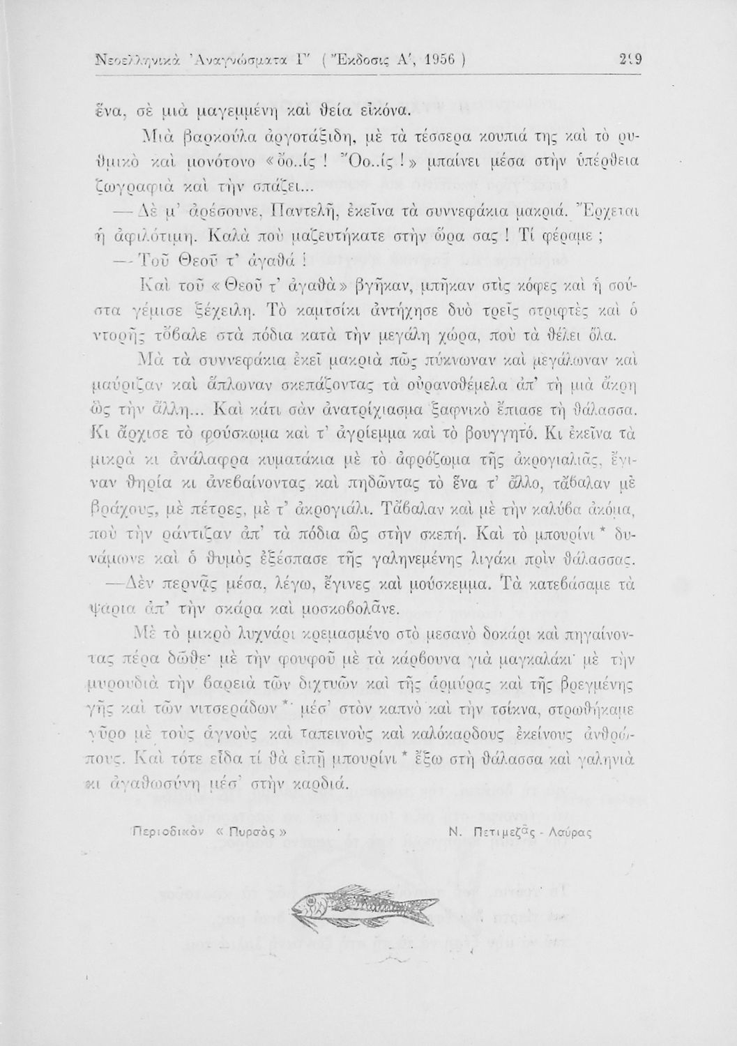 Σχολικό εγχειρίδιο Νέων Ελληνικών Γ΄ Γυμνασίου και Α' Αστικού Σχολείου που περιέχει πεζά και ποιήματα Ελλήνων συγγραφέων εμπνευσμένα από τη θρησκευτική και κοινωνική ζωή, την ελληνική μυθολογία, την αρχαία και