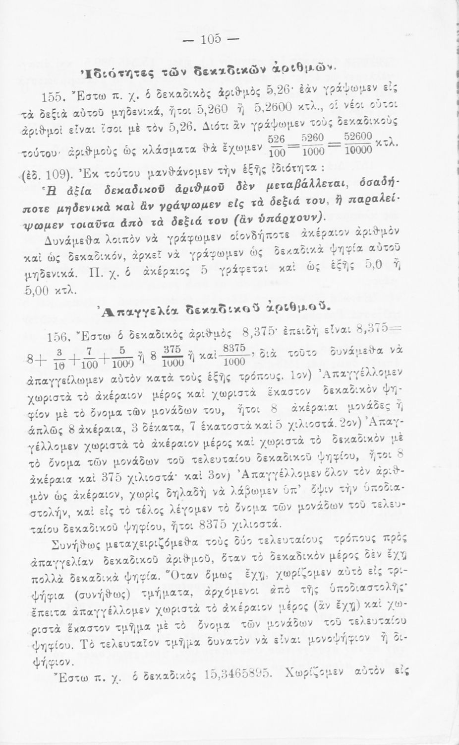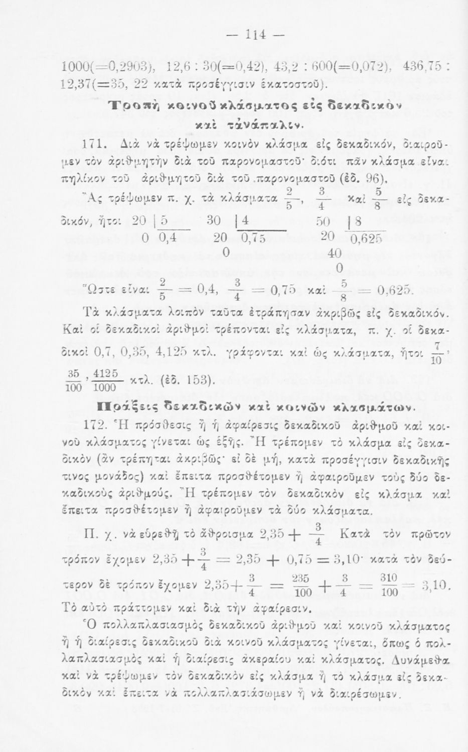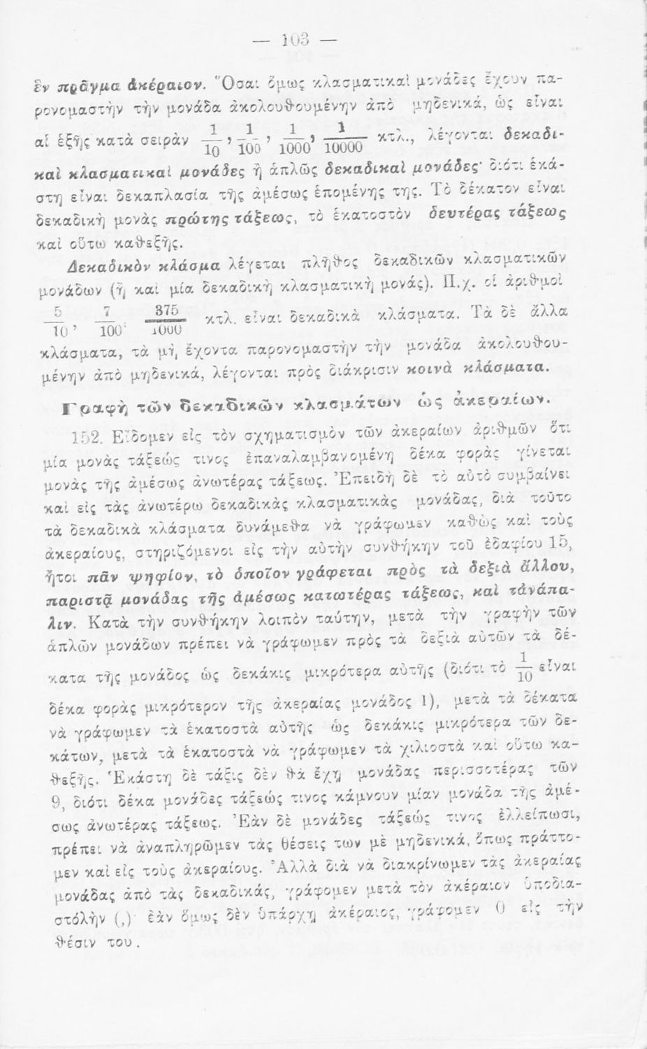520 ## _aΣχολικό εγχειρίδιο Αριθμητικής για τις Α΄, Β΄, Γ΄ Γυμνασίου και τα Ανώτερα Παρθεναγωγεία που είναι χωρισμένο σε θεωρία και ασκήσεις και εστιάζει στις αριθμητικές πράξεις με κλάσματα και ακέραιους και συμμιγείς αριθμούς.