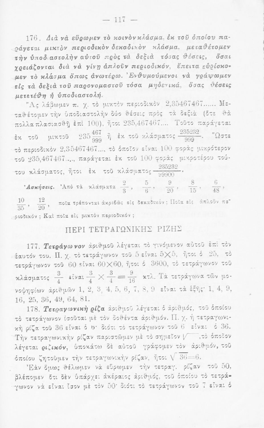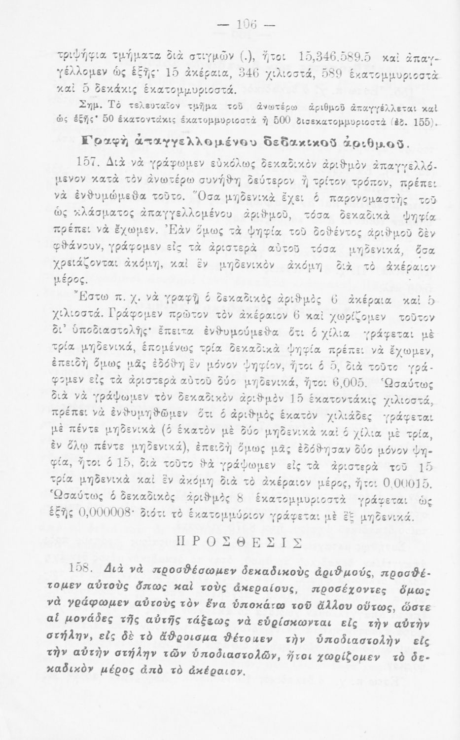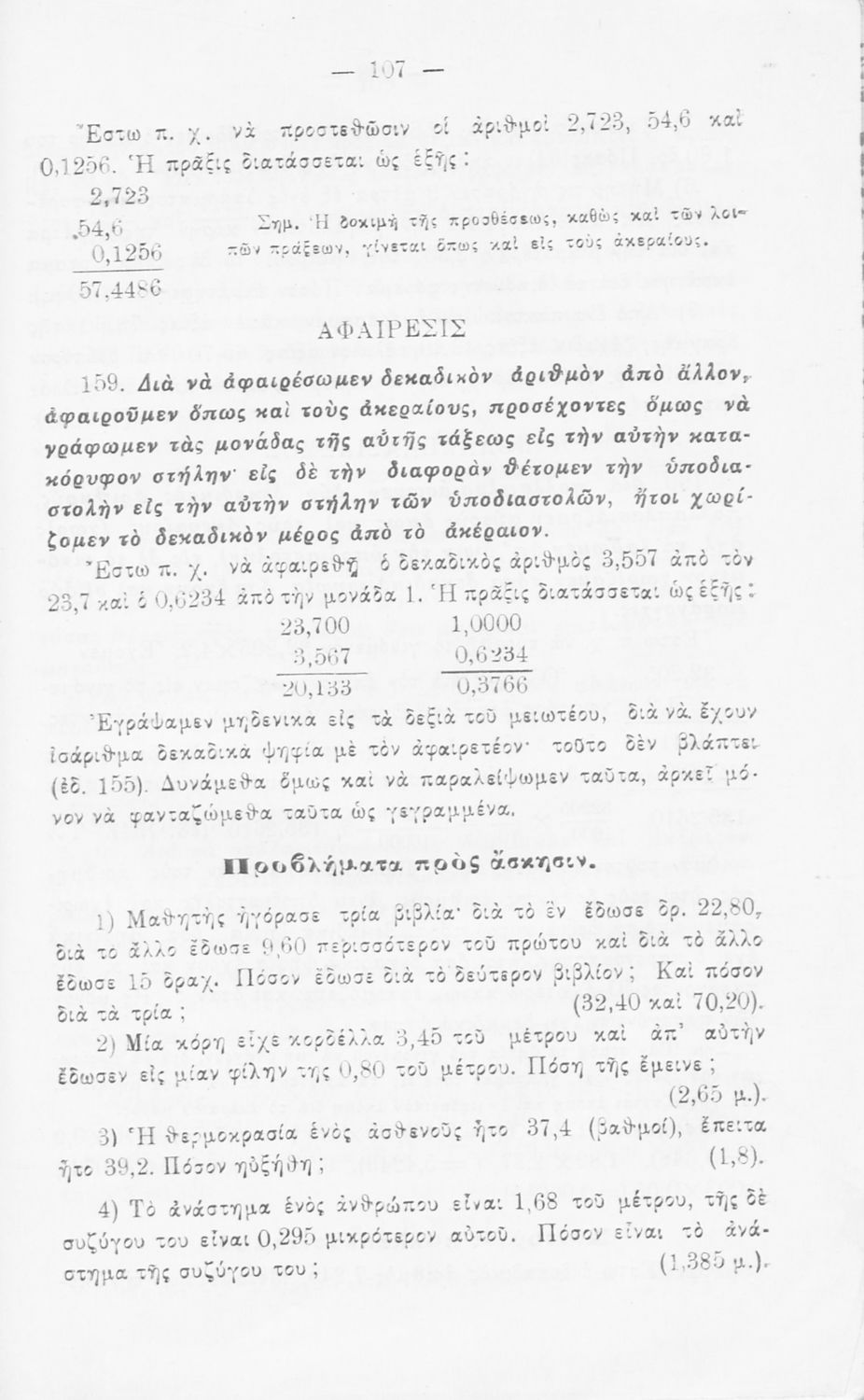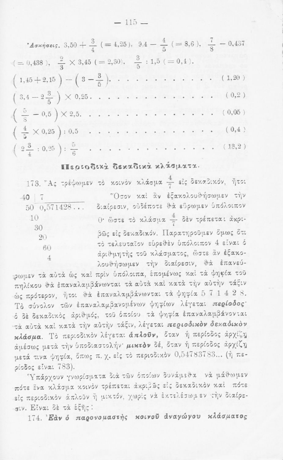 520 ## _aΣχολικό εγχειρίδιο Αριθμητικής για τις Α΄, Β΄, Γ΄ Γυμνασίου και τα Ανώτερα Παρθεναγωγεία που είναι χωρισμένο σε θεωρία και ασκήσεις και εστιάζει στις αριθμητικές πράξεις με κλάσματα και ακέραιους και συμμιγείς αριθμούς.