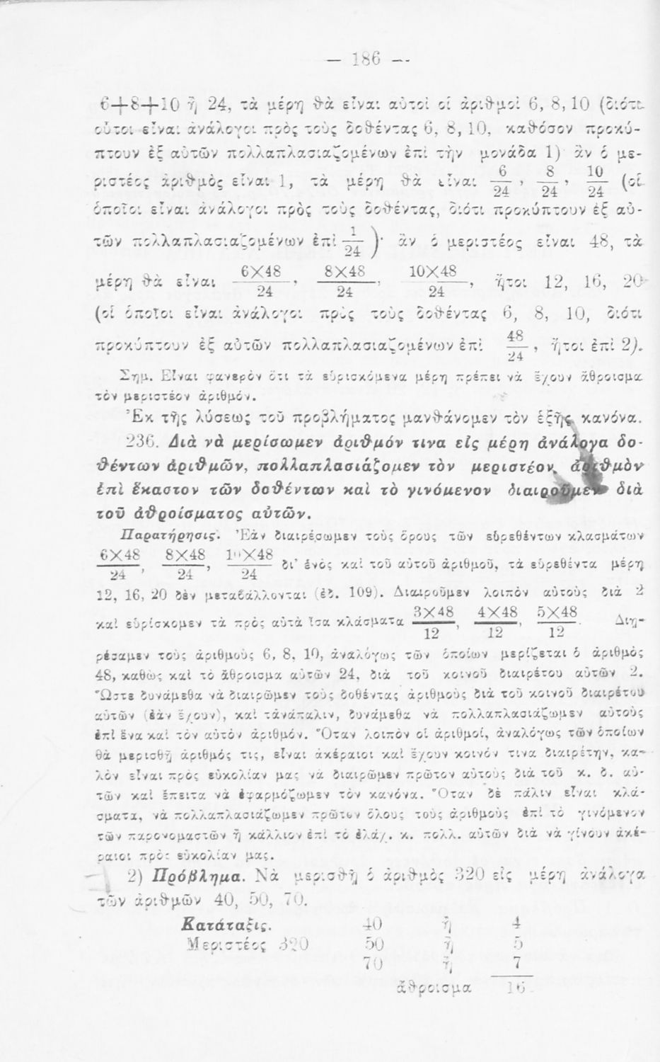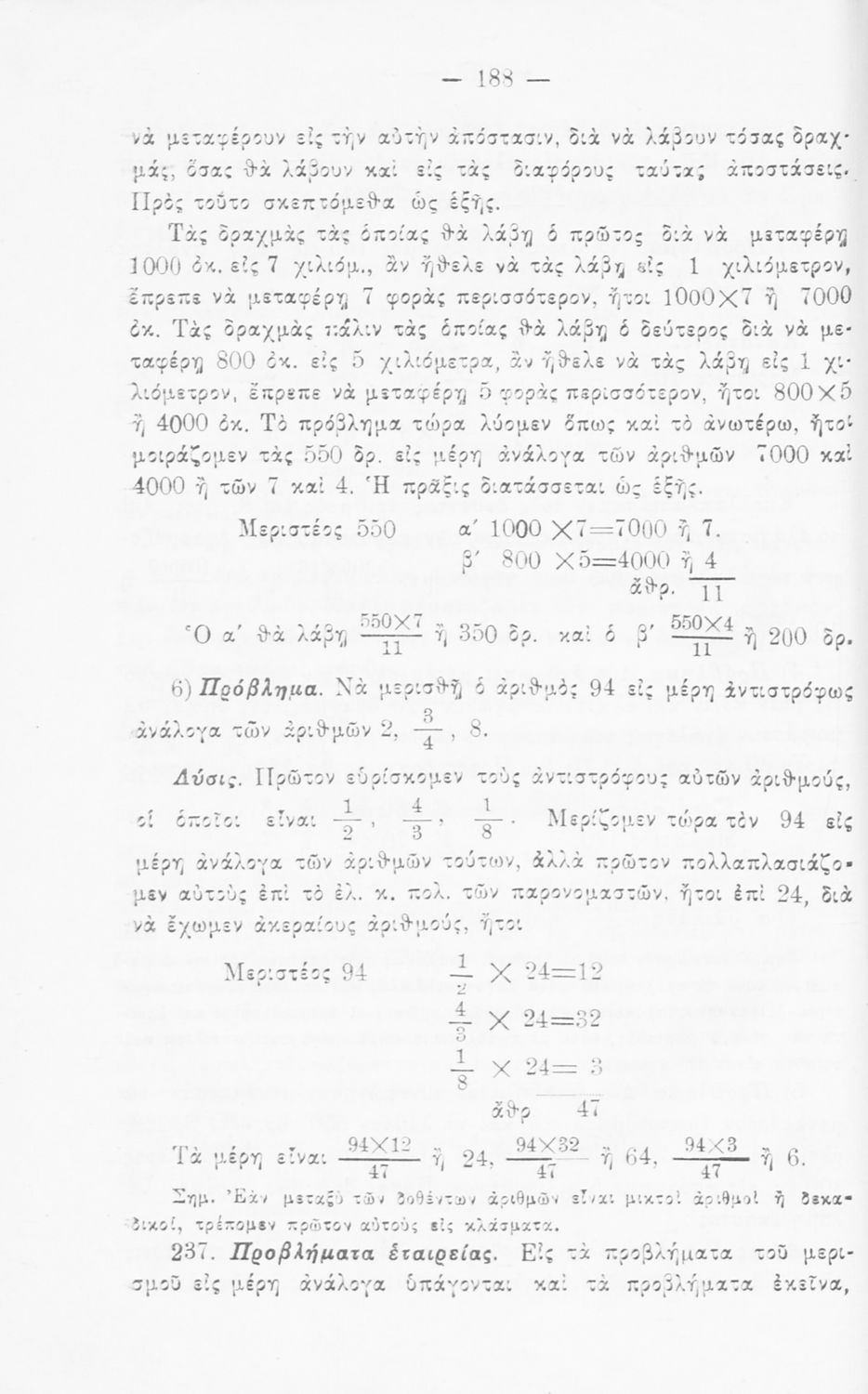Σχολικό εγχειρίδιο Αριθμητικής για τις Α΄, Β΄, Γ΄ Γυμνασίου και τα Ανώτερα Παρθεναγωγεία που είναι χωρισμένο σε θεωρία και ασκήσεις και εστιάζει στις αριθμητικές πράξεις με κλάσματα και ακέραιους και συμμιγείς
