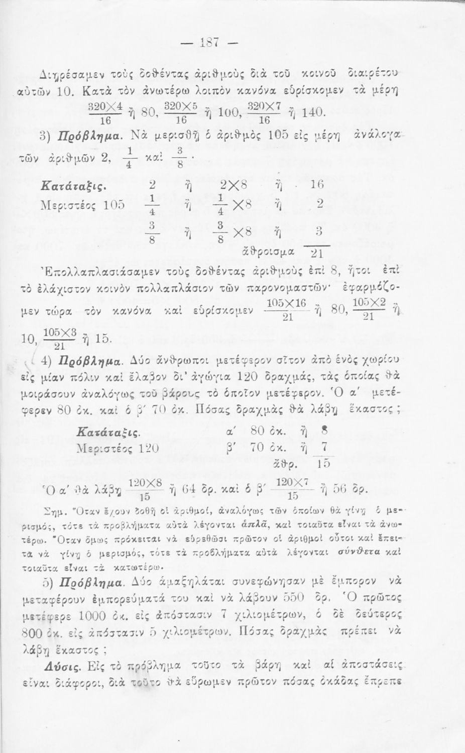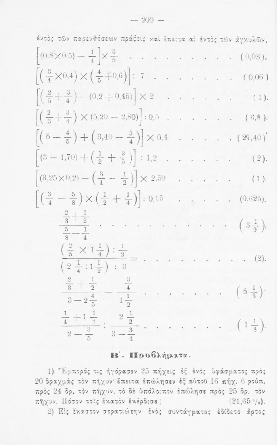 Σχολικό εγχειρίδιο Αριθμητικής για τις Α΄, Β΄, Γ΄ Γυμνασίου και τα Ανώτερα Παρθεναγωγεία που είναι χωρισμένο σε θεωρία και ασκήσεις και εστιάζει στις αριθμητικές πράξεις με κλάσματα και ακέραιους και συμμιγείς αριθμούς.