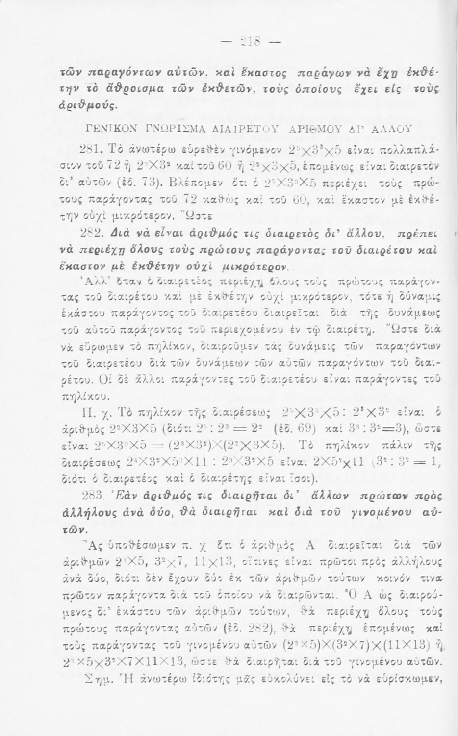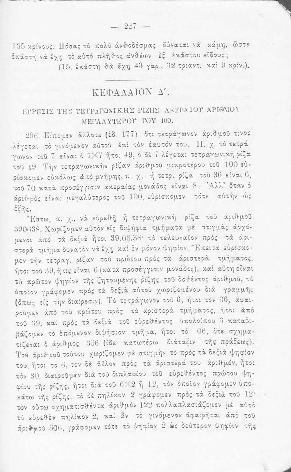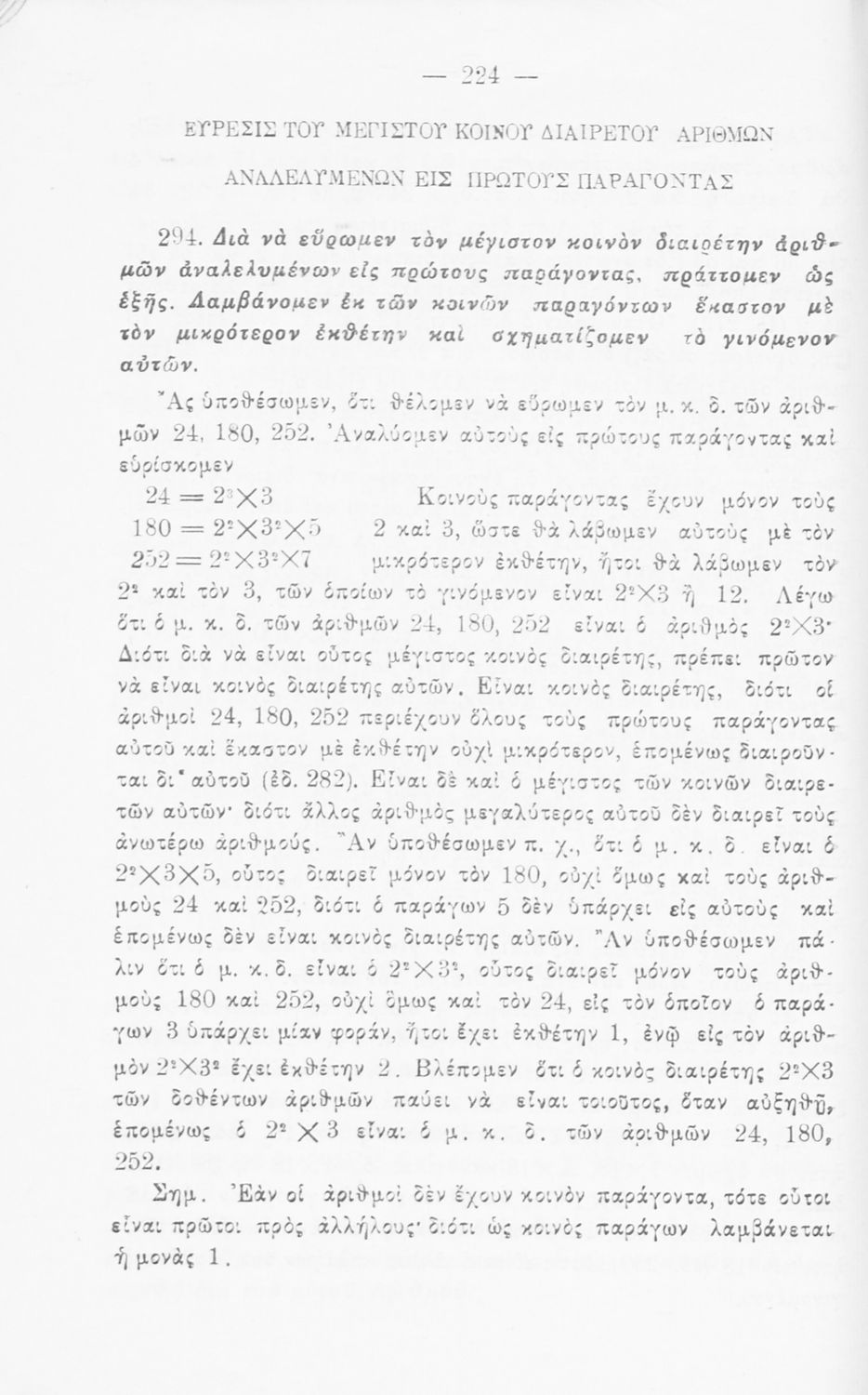 Βαθμίδα εκπαίδευσης: Δευτεροβάθμια Τάξη: Α' Γυμνασίου / Β' Γυμνασίου / Γ' Γυμνασίου Μάθημα: Αριθμητική Γλώσσα: Καθαρεύουσα Παρουσίαση περιεχομένου: Σχολικό εγχειρίδιο Αριθμητικής για τις Α΄, Β΄, Γ΄ Γυμνασίου και τα Ανώτερα Παρθεναγωγεία που είναι χωρισμένο σε θεωρία και ασκήσεις και εστιάζει στις αριθμητικές πράξεις με κλάσματα και ακέραιους και συμμιγείς αριθμούς. |