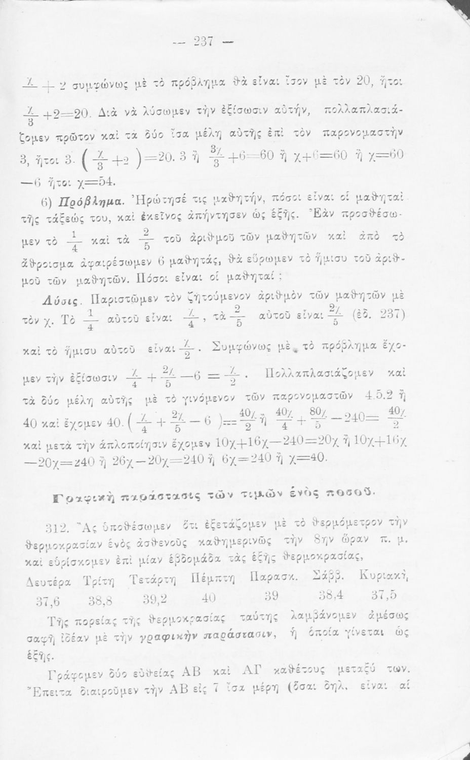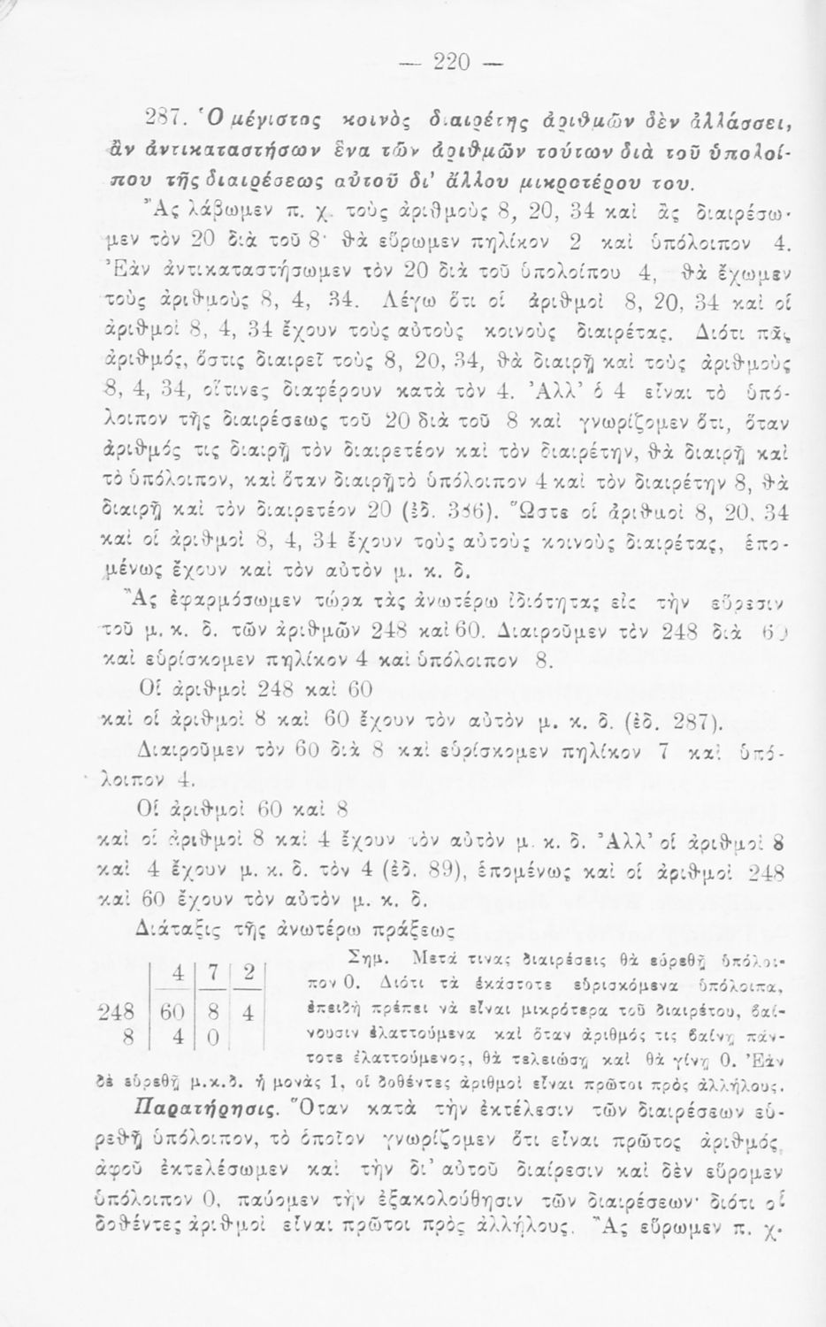 Σχολικό εγχειρίδιο Αριθμητικής για τις Α΄, Β΄, Γ΄ Γυμνασίου και τα Ανώτερα Παρθεναγωγεία που είναι χωρισμένο σε θεωρία και ασκήσεις και εστιάζει στις αριθμητικές πράξεις με κλάσματα και ακέραιους και συμμιγείς αριθμούς.