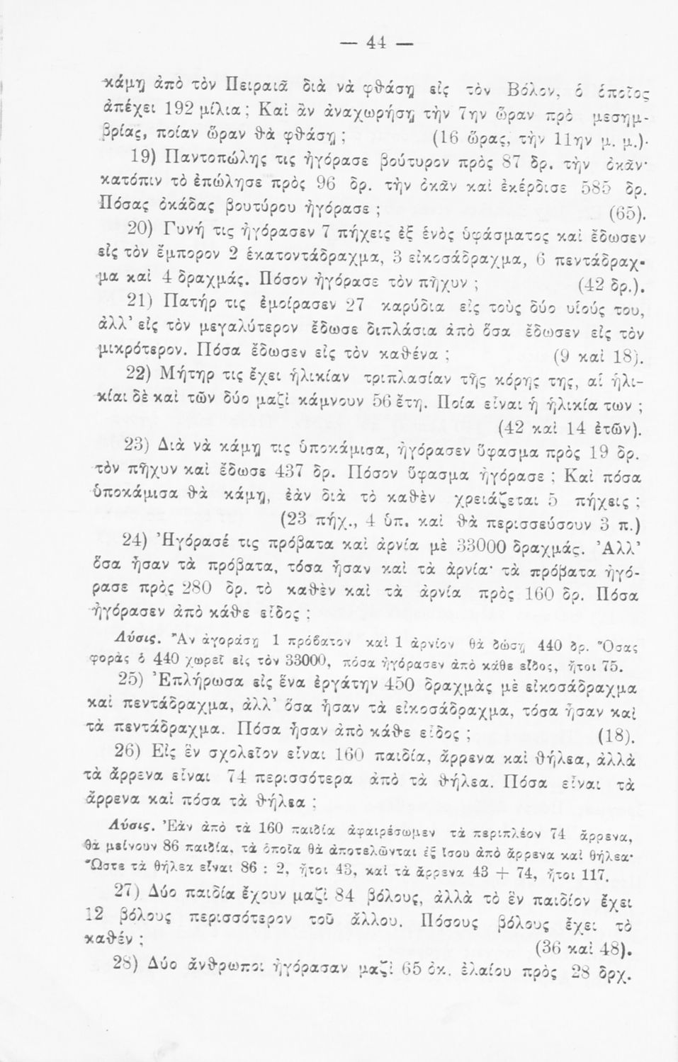 Τάξη:  Α' Γυμνάσιου / Β' Γυμνάσιου / Ανώτερα Παρθεναγωγεία / Α' Διδασκαλείου
