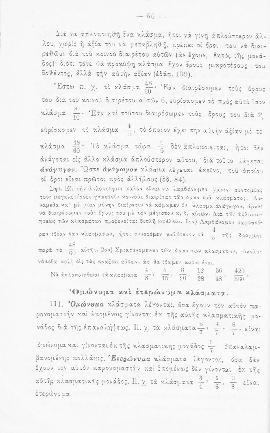 Παρουσίαση περιεχομένου: Σχολικό εγχειρίδιο Αριθμητικής για τις Α΄, Β΄, Γ΄ Γυμνασίου και τα Ανώτερα Παρθεναγωγεία που είναι χωρισμένο σε θεωρία και ασκήσεις και εστιάζει στις αριθμητικές πράξεις με κλάσματα και ακέραιους και συμμιγείς αριθμούς.