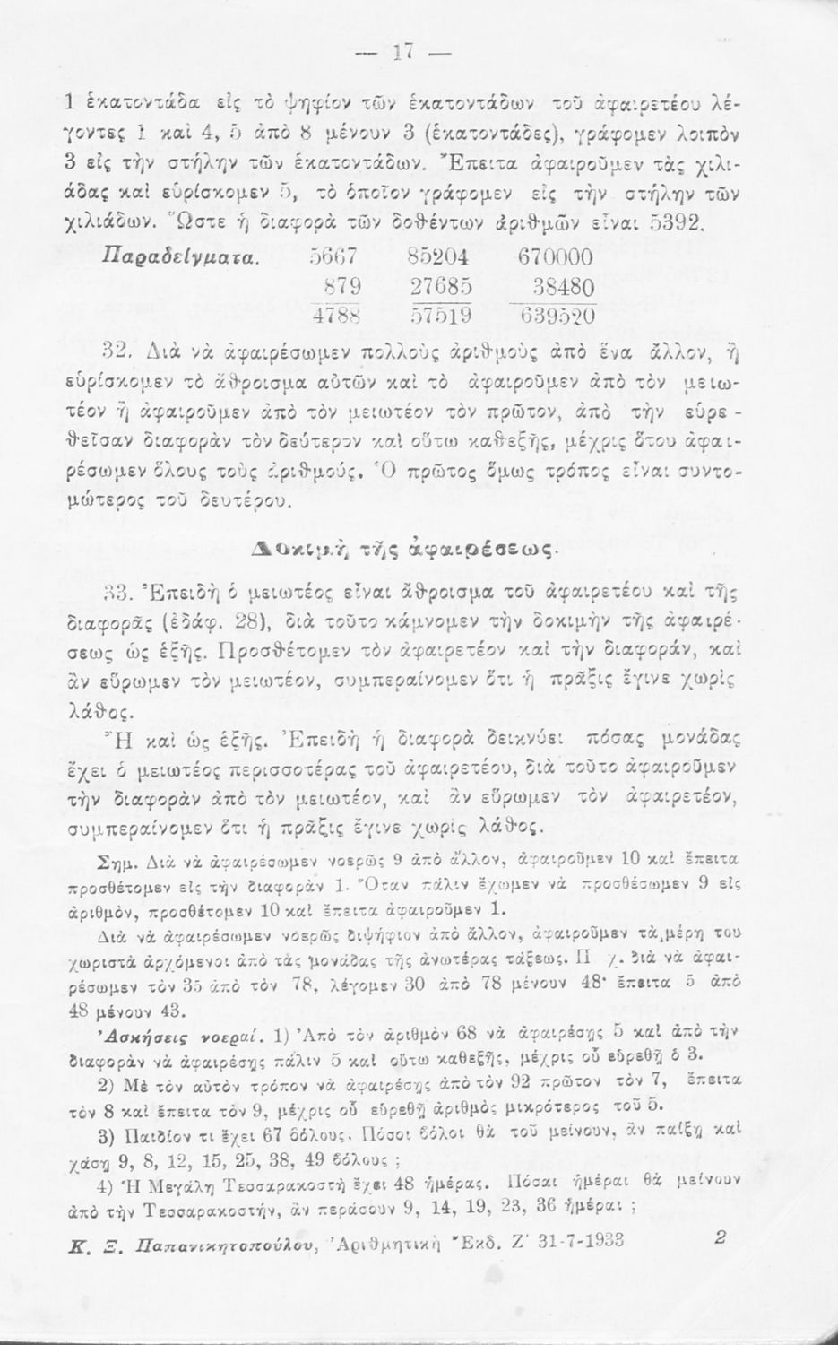 LDR 01502 2200217 4500 035 ## _a05-00210 040 ## _aΕργαστήρι Ιστορίας Ν.Ε. Εκπαίδευσης, Πανεπιστήμιο Ιωαννίνων 041 ## _ael 100 ## _aΚ. Ξ. Παπανικητόπουλος 110 ## _a210 245 0# _aΑριθμητική προς χρήσιν των μαθητών και μαθητριών των Γυμνασίων Α΄, Β΄, Γ΄ τάξεως, των Ημιγυμνασίων και των Ανωτέρων Παρθεναγωγείων 250 ## _a7η Έκδοση 260 ## _aΑθήνα _bΔημ. Ν. Τζάκας, Στεφ. Δελαγραμμάτικας _c1933 300 ## _a239 520 ## _aΣχολικό εγχειρίδιο Αριθμητικής για τις Α΄, Β΄, Γ΄ Γυμνασίου και τα Ανώτερα Παρθεναγωγεία που είναι χωρισμένο σε θεωρία και ασκήσεις και εστιάζει στις αριθμητικές πράξεις με κλάσματα και ακέραιους και συμμιγείς αριθμούς. 521 ## _aΑ' Γυμνασίου / Β' Γυμνασίου / Γ' Γυμνασίου 522 ## _aΕλλάδα 546 ## _aΚαθαρεύουσα 563 ## _aΜαλακό Εξώφυλλο 583 ## _a41062/31-7-1933 650 #4 _aΑριθμητικές πράξεις _aΕξισώσεις _aΚλάσματα _aΜέθοδοι _aΣυμμιγείς αριθμοί _aΤόκος