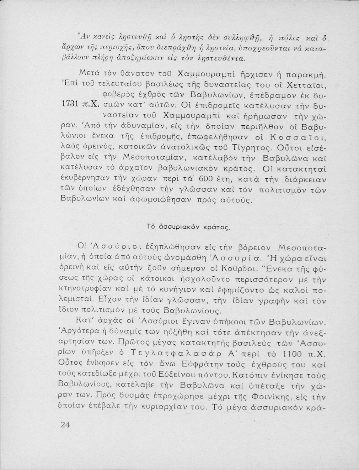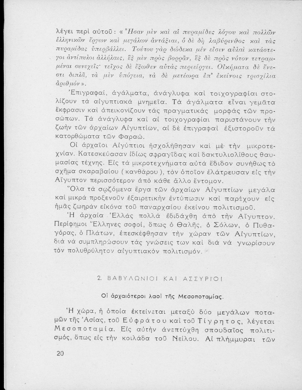 Βαθμίδα εκπαίδευσης: Δευτεροβάθμια Τάξη: Β' Γυμνασίου Μάθημα: Ιστορία Γλώσσα: Απλή καθαρεύουσα Παρουσίαση περιεχομένου: Σχολικό εγχειρίδιο Ιστορίας Β΄ Γυμνασίου που καλύπτει την περίοδο από την περίοδο από την εμφάνιση των πρώτων πολιτισμών μέχρι τη Μακεδονική Ηγεμονία. |