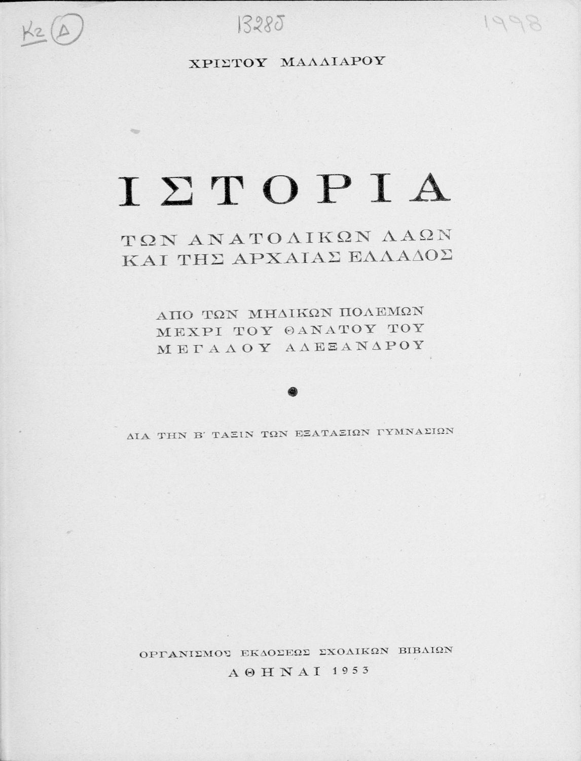 Εντοπισμός πρωτοτύπου: Εργαστήρι Ιστορίας Ν.Ε. Εκπαίδευσης, Πανεπιστήμιο Ιωαννίνων Κωδικός βιβλιοθήκης: 203 |