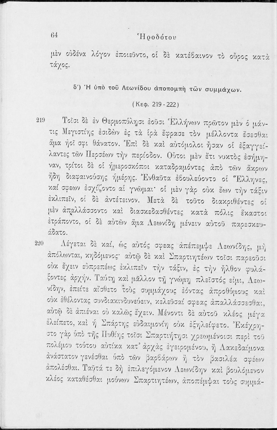 Σχολικό εγχειρίδιο Αρχαίων Ελληνικών Δ΄ Γυμνασίου που περιλαμβάνει εισαγωγή στη ζωή και το έργο του Ηρόδοτου, αποσπάσματα από την Ιστορία του και ερμηνευτικές σημειώσεις.