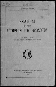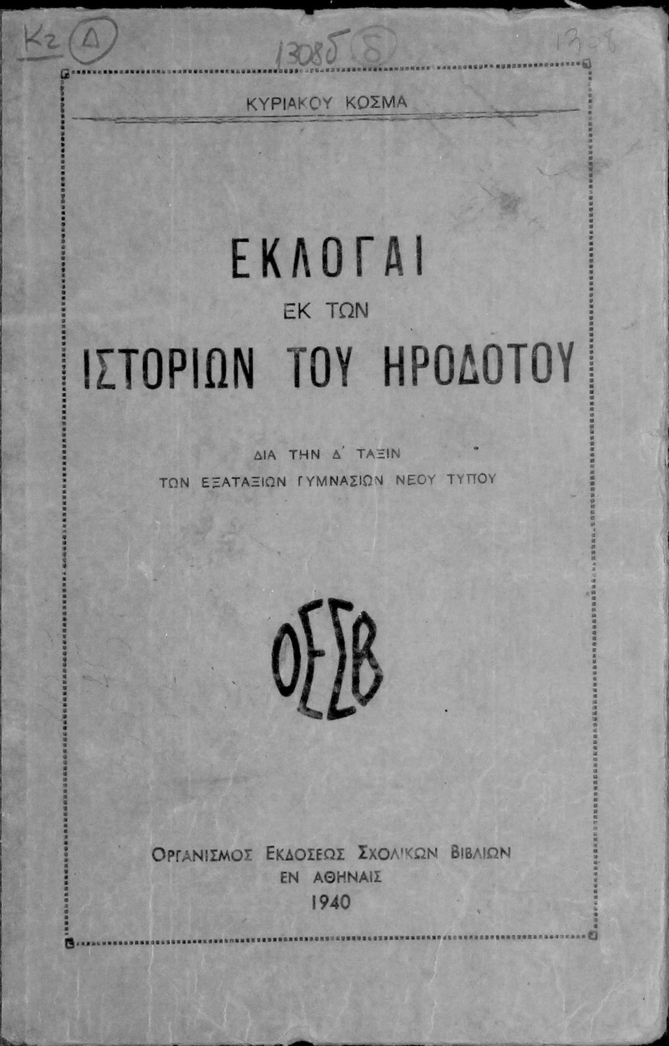 Εκδότης: Οργανισμός Εκδόσεως Σχολικών Βιβλίων Έτος έκδοσης: 1940 Τόπος έκδοσης: Αθήνα |