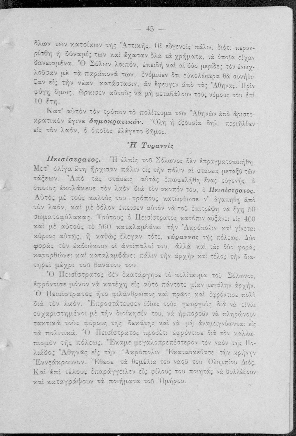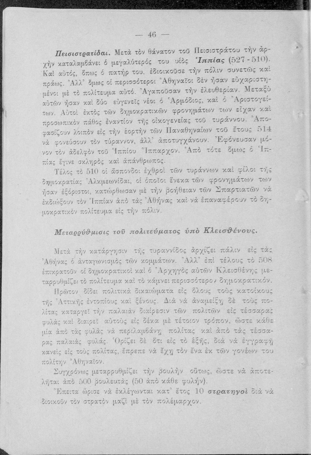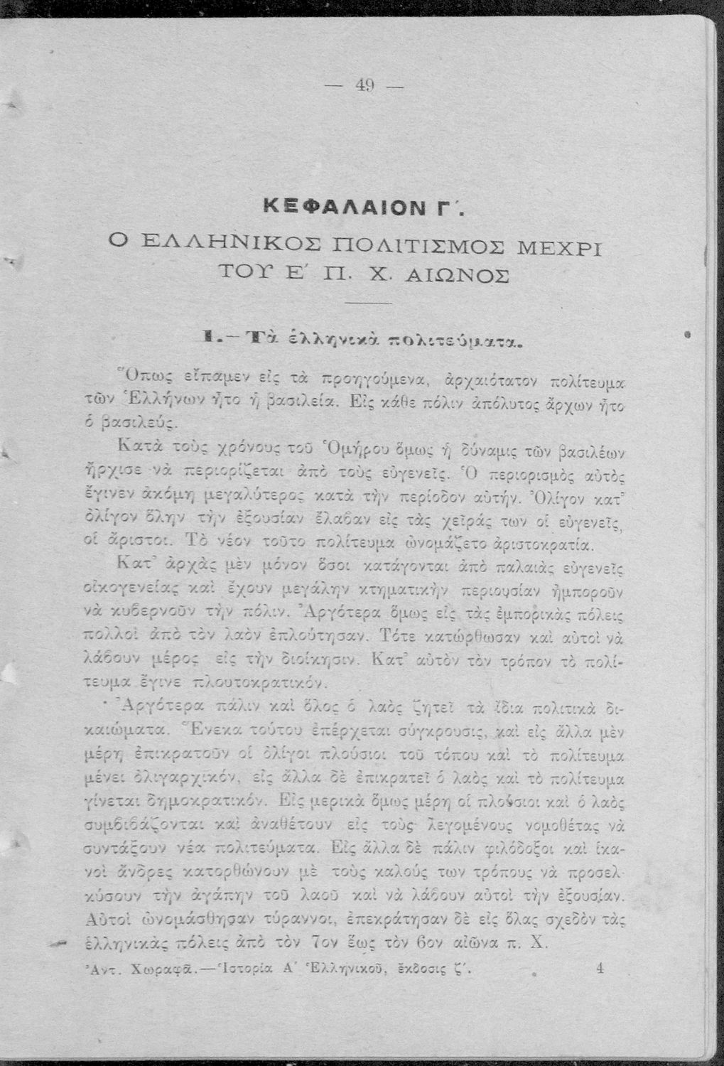 Σχολικό εγχειρίδιο Ιστορίας Α΄ Ελληνικού Σχολείου και Παρθεναγωγείου που καλύπτει την περίοδο από τους ηρωικούς και μυθικούς χρόνους μέχρι την μάχη της Μαντινείας και τον θάνατο του Επαμεινώνδα.