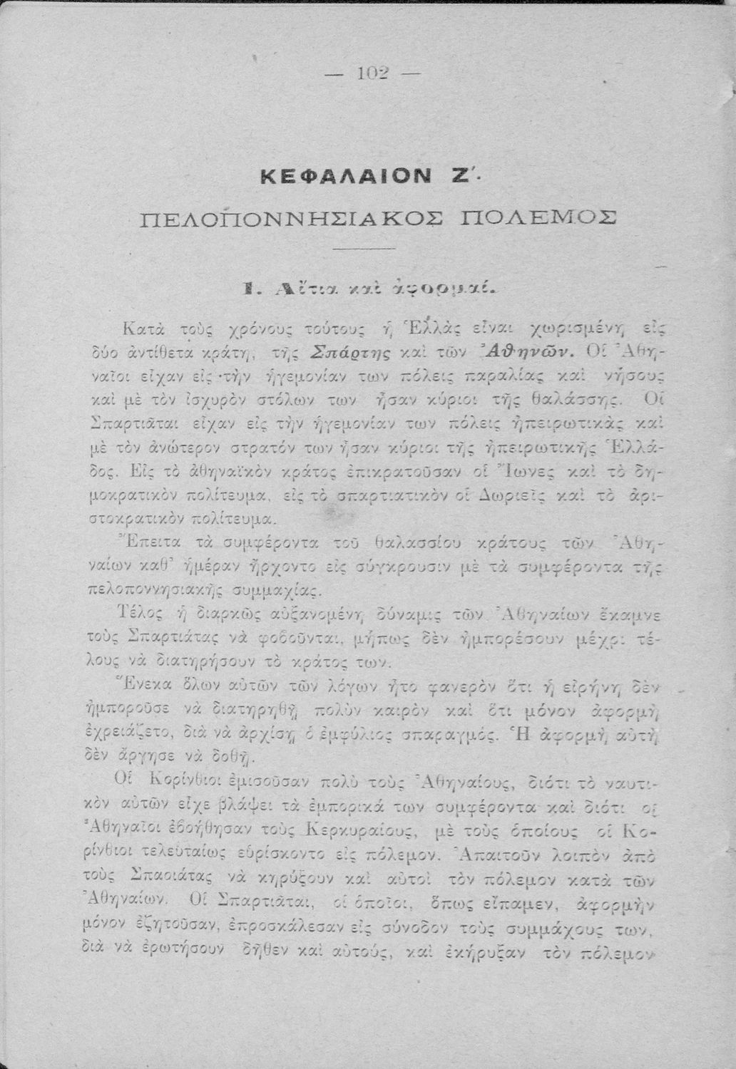 Σχολικό εγχειρίδιο Ιστορίας Α΄ Ελληνικού και Παρθεναγωγείου που καλύπτει την περίοδο από τους μυθικούς και ηρωικούς χρόνους μέχρι την μάχη της Μαντινείας και τον θάνατο του Επαμεινώνδα.