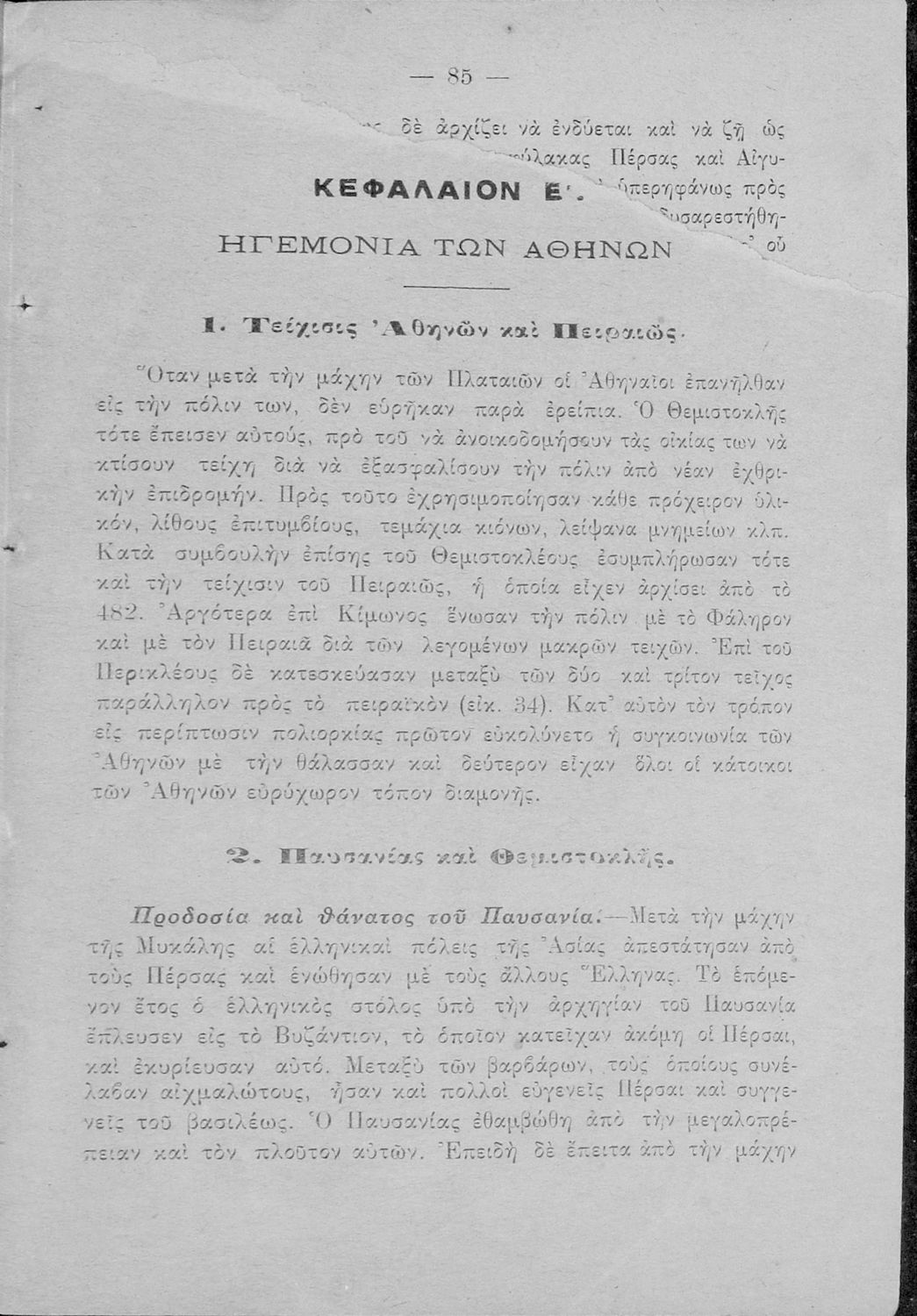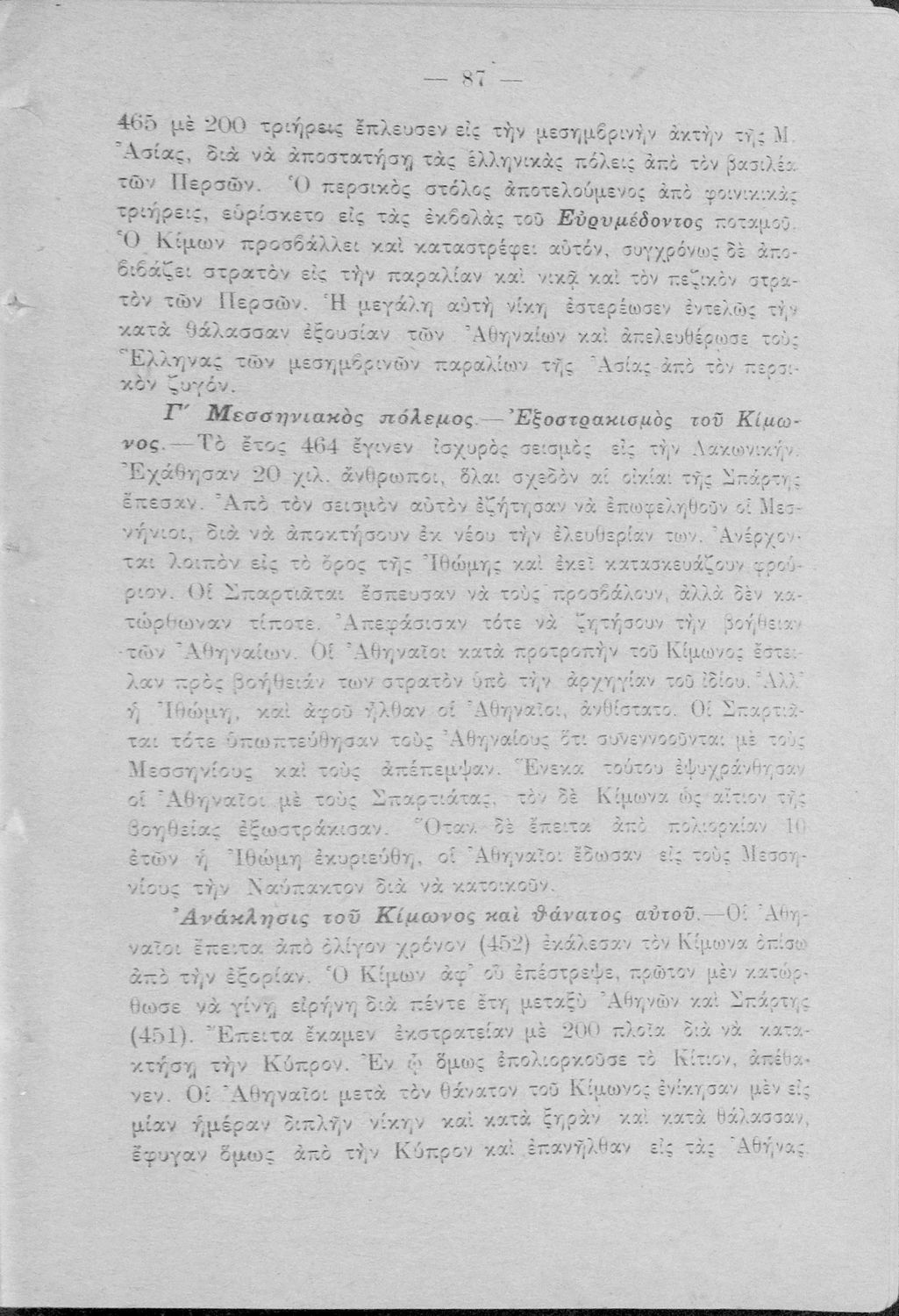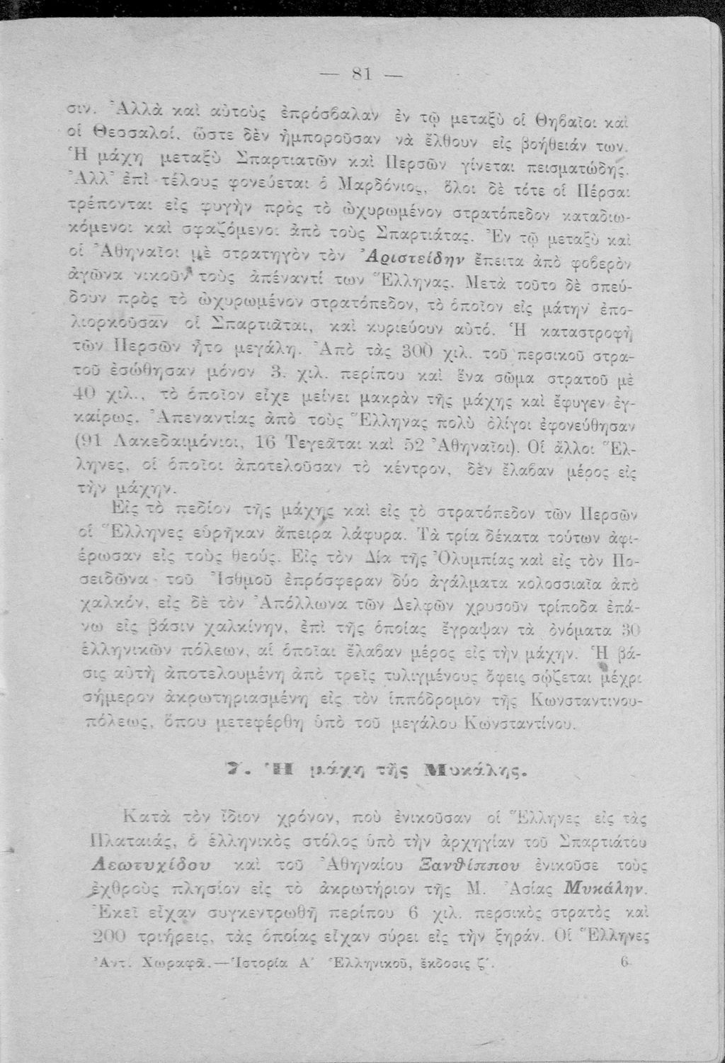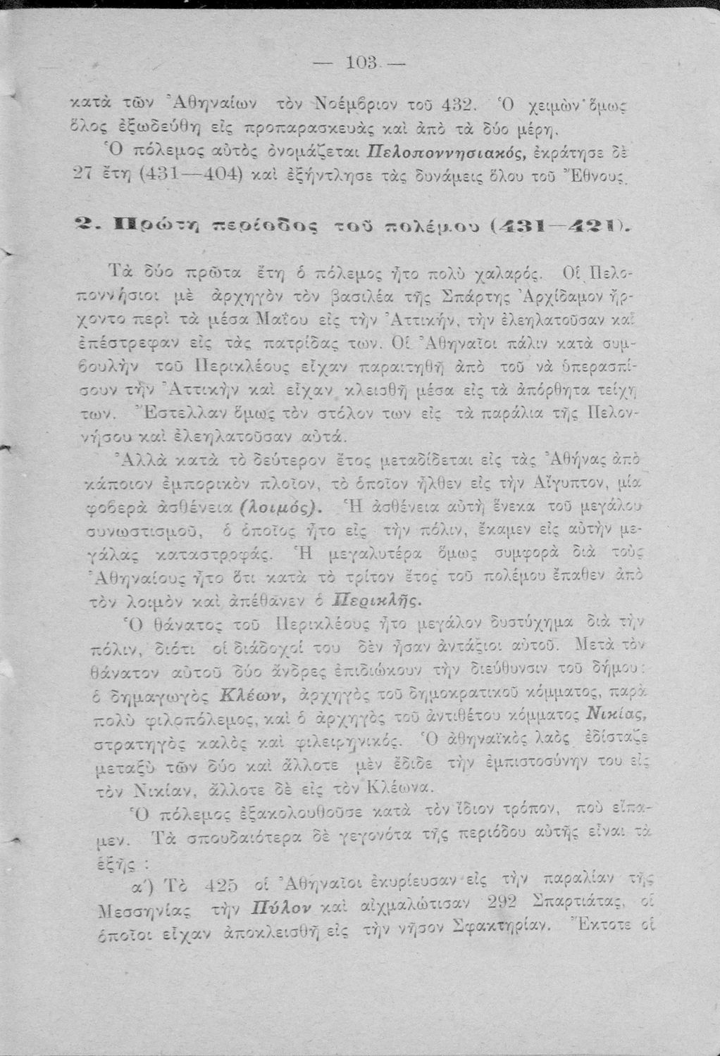 Σχολικό εγχειρίδιο Ιστορίας Α΄ Ελληνικού Σχολείου και Παρθεναγωγείου που καλύπτει την περίοδο από τους ηρωικούς και μυθικούς χρόνους μέχρι την μάχη της Μαντινείας και τον θάνατο του Επαμεινώνδα.