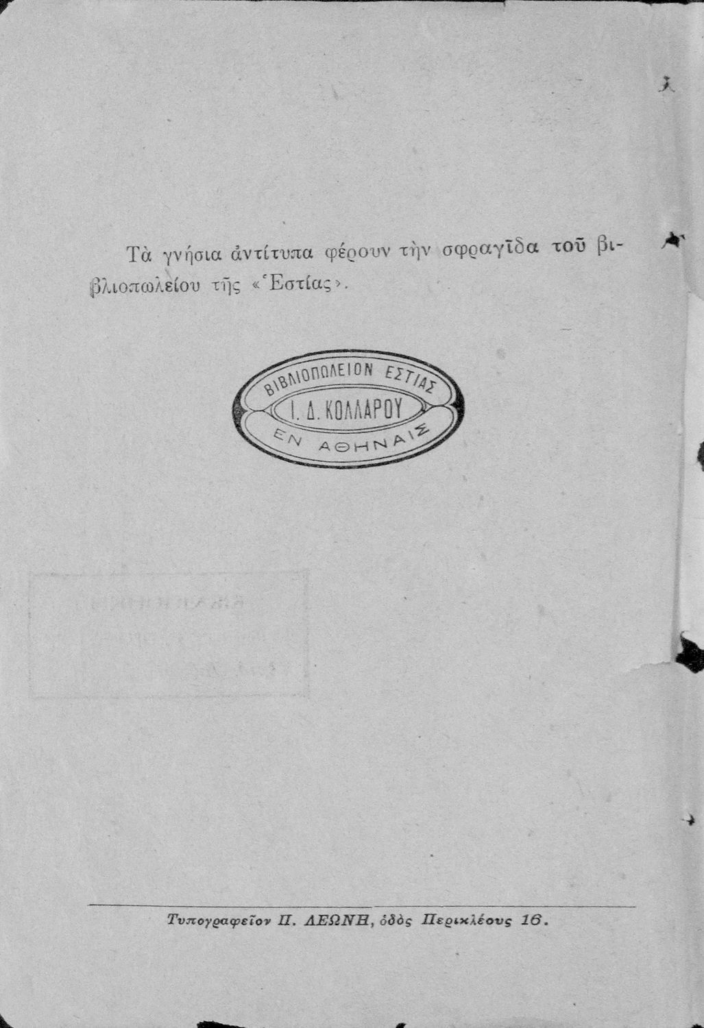 Εκδότης: Ιωάννης Δ. Κολλάρος και ΣΙΑ Έτος έκδοσης: 1927 Τόπος έκδοσης: Αθήνα Έκδοση: 7η |