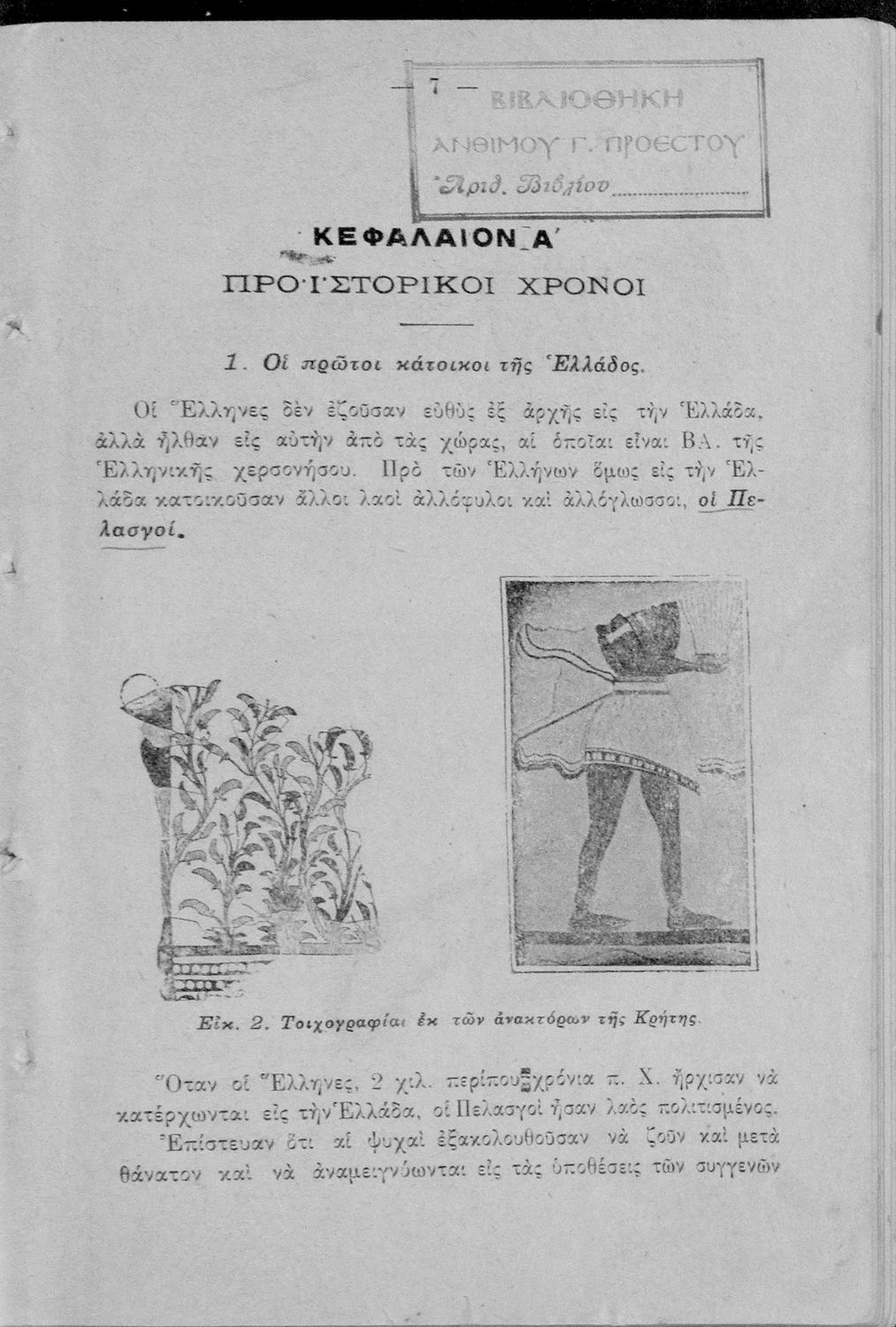 Σχολικό εγχειρίδιο Ιστορίας Α' Ελληνικού Σχολείου που καλύπτει το διάστημα από τους προϊστορικούς χρόνους ως τη Μακεδονική Ηγεμονία.