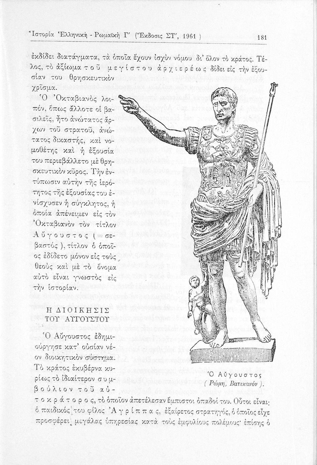 Κωδικός αναγνώρισης: 05-00217 Τίτλος: Ιστορία Ελληνική - Ρωμαϊκή από του θανάτου του Μ. Αλεξάνδρου μέχρι του Μ. Κωνσταντίνου. Διά την Γ΄ τάξιν των Εξαταξίων Γυμνασίων Συγγραφέας: Α. Λαζάρου, Δ. Χατζής Μέγεθος και υπόστρωμα: Σχολικό εγχειρίδιο, μαλακό εξώφυλλο, 263 σελίδες. Εικόνες (ασπρόμαυρες). |