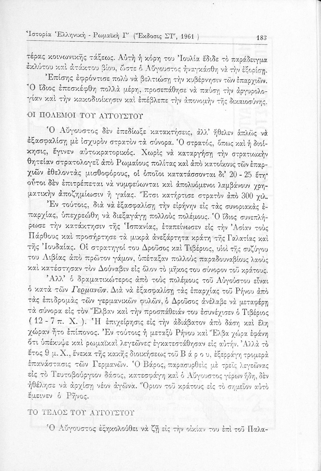 LDR 01499 2200217 4500 035 ## _a05-00217 040 ## _aΕργαστήρι Ιστορίας Ν.Ε. Εκπαίδευσης, Πανεπιστήμιο Ιωαννίνων 041 ## _ael 100 ## _aΑ. Λαζάρου _aΔ. Χατζής 110 ## _a217 245 0# _aΙστορία Ελληνική - Ρωμαϊκή από του θανάτου του Μ. Αλεξάνδρου μέχρι του Μ. Κωνσταντίνου. Διά την Γ΄ τάξιν των Εξαταξίων Γυμνασίων 250 ## _a6η Έκδοση 260 ## _aΑθήνα _bΟργανισμός Εκδόσεως Σχολικών Βιβλίων _c1961 300 ## _a263 _bΕικόνες (ασπρόμαυρες) 520 ## _aΣχολικό εγχειρίδιο Ιστορίας Γ΄ Γυμνασίου που καλύπτει την περίοδο από το θάνατο του Μ. Αλέξανδρου και τα ελληνιστικά βασίλεια ως την παρακμή της ρωμαϊκής αυτοκρατορίας. Περιέχει και παράρτημα με το μετρικό σύστημα των Ρωμαίων. 521 ## _aΓ' Γυμνασίου 522 ## _aΕλλάδα 546 ## _aΑπλή καθαρεύουσα 563 ## _aΜαλακό Εξώφυλλο 583 ## _a1045/27-4-1961 650 #4 _aΓράκχοι _aΔημοκρατία _aΔιοκλητιανός _aΚαρχηδόνα _aΠτολεμαίοι _aΧριστιανισμός