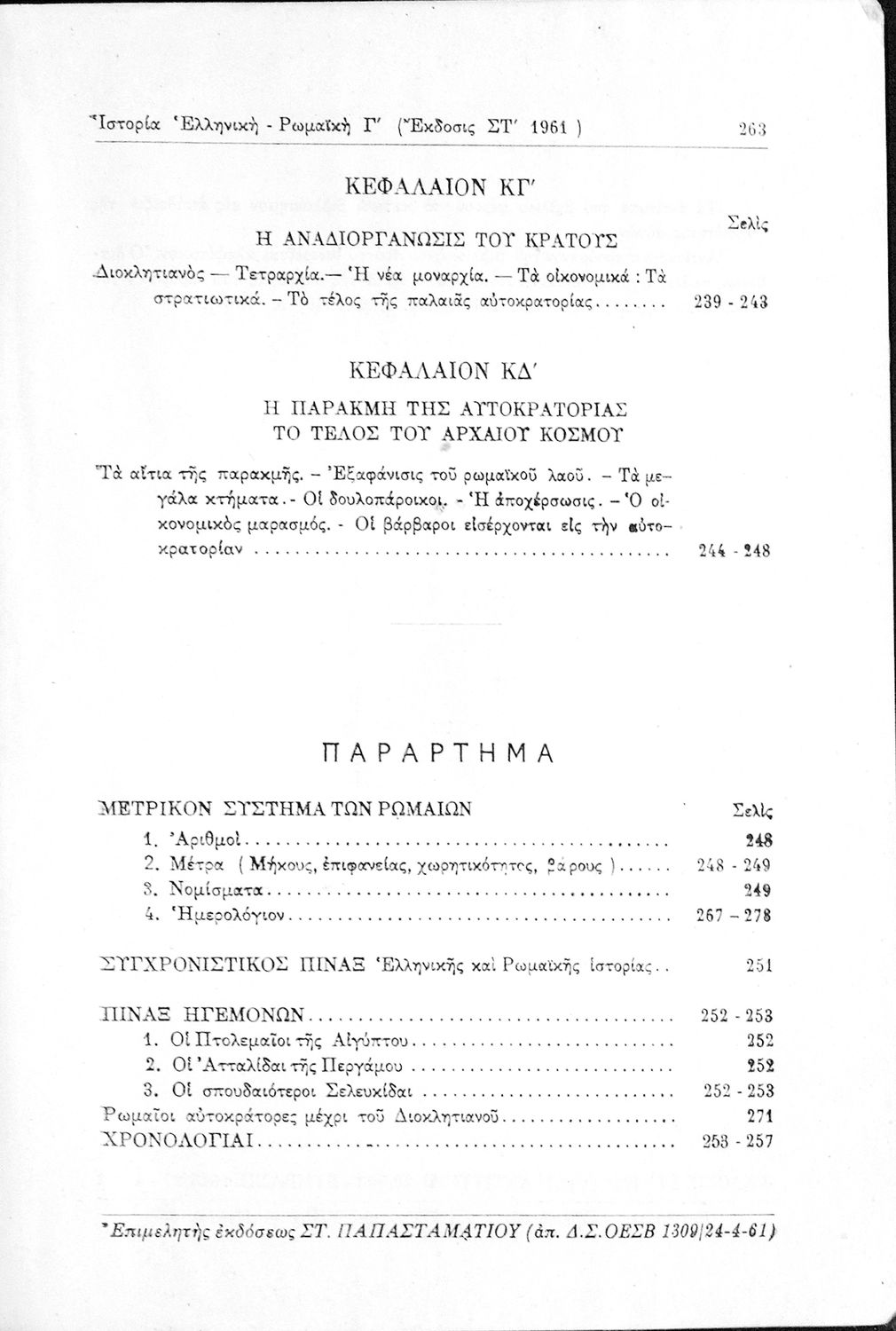 Τίτλος: Ιστορία Ελληνική - Ρωμαϊκή από του θανάτου του Μ. Αλεξάνδρου μέχρι του Μ. Κωνσταντίνου. Διά την Γ΄ τάξιν των Εξαταξίων Γυμνασίων