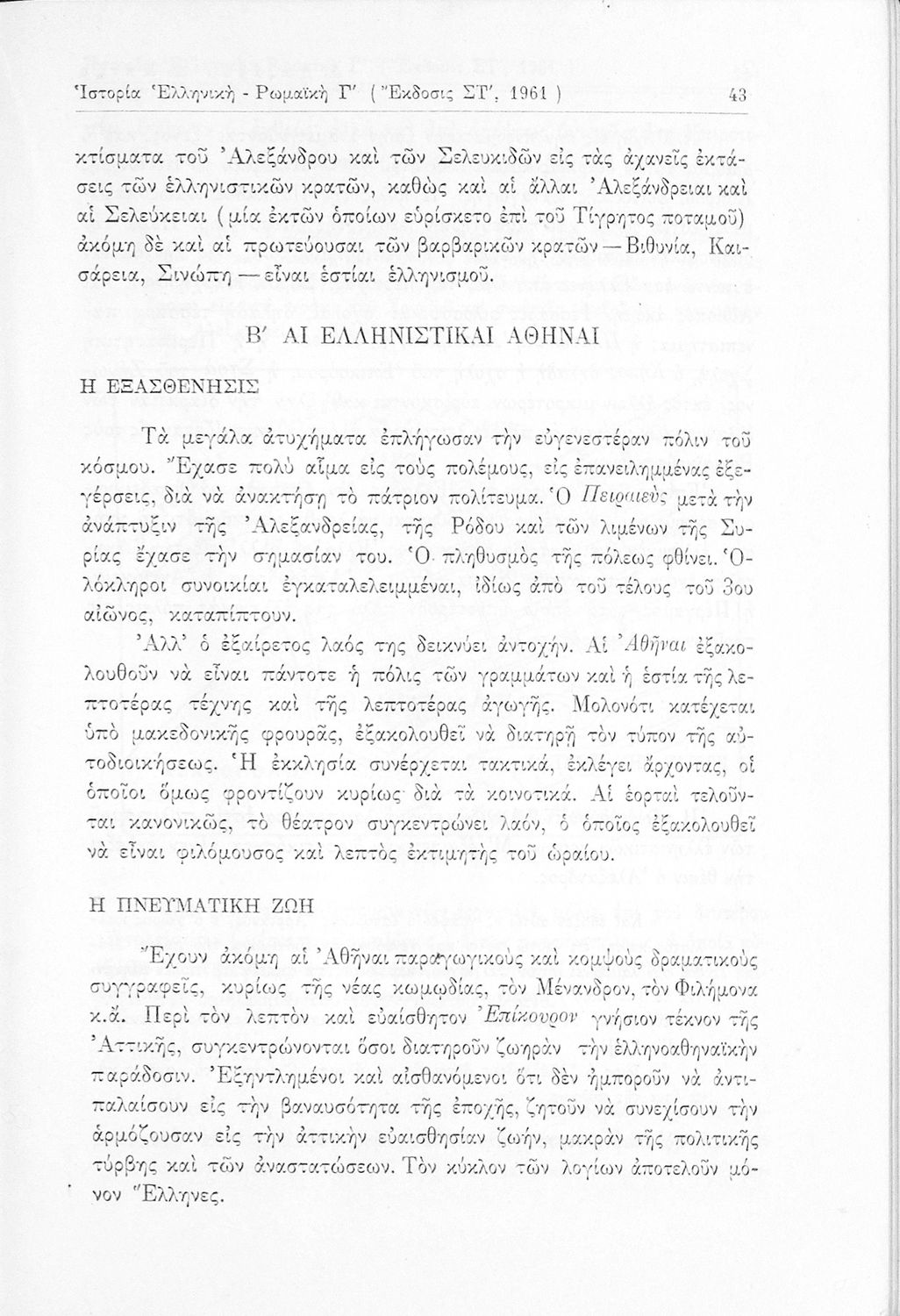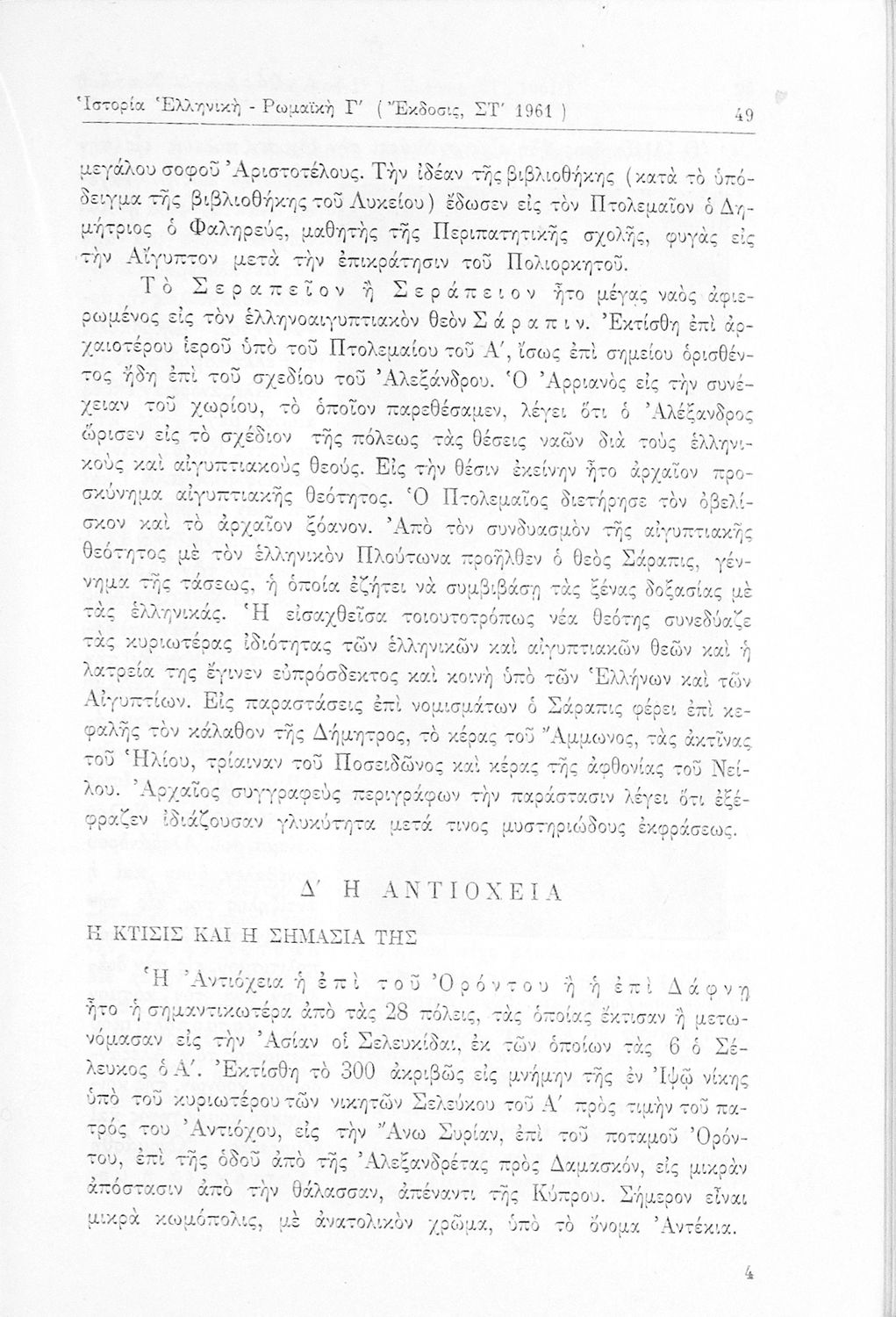 Ιστορία Ελληνική - Ρωμαϊκή από του θανάτου του Μ. Αλεξάνδρου μέχρι του Μ. Κωνσταντίνου. Διά την Γ΄ τάξιν των Εξαταξίων Γυμνασίων