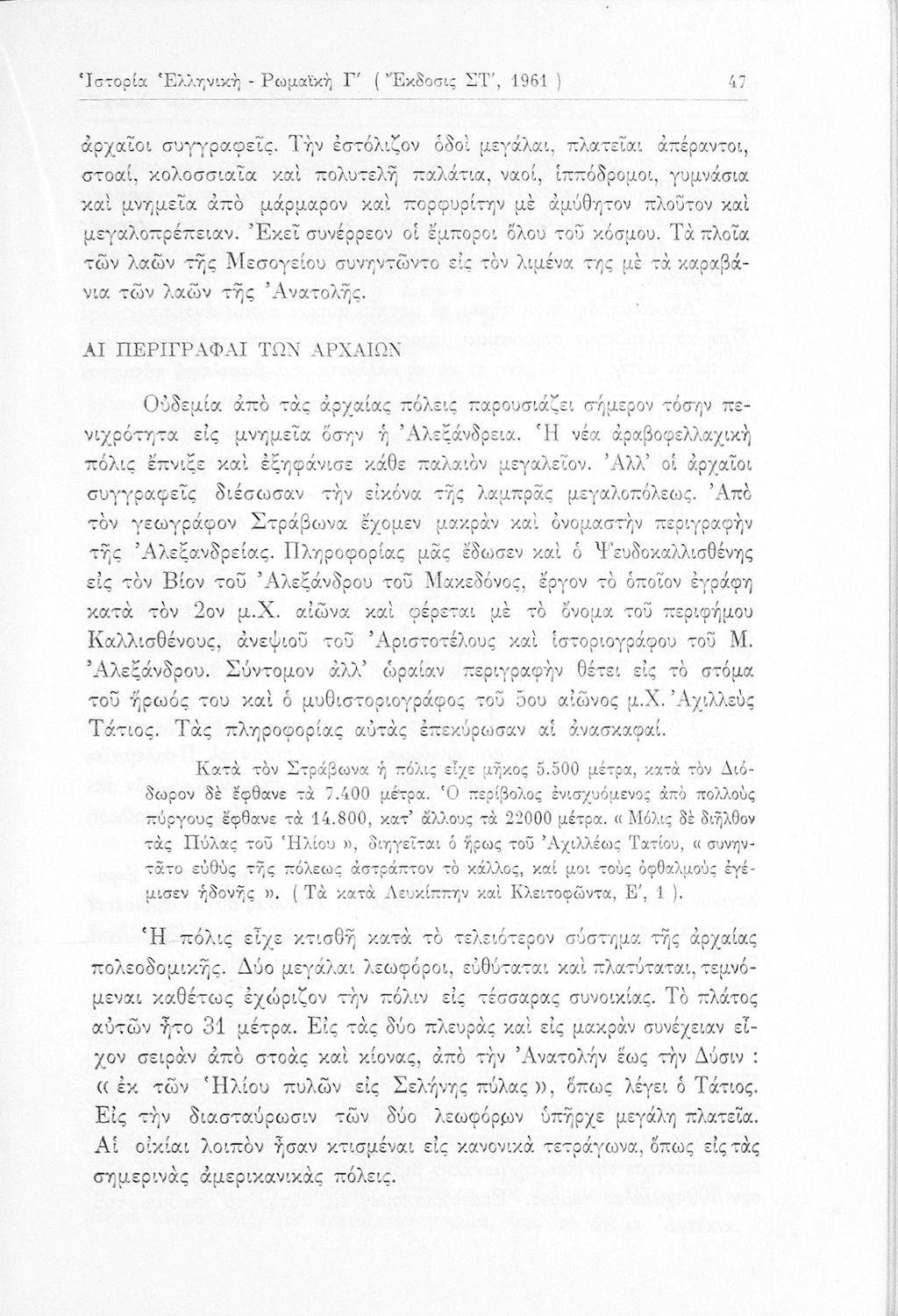 Σχολικό εγχειρίδιο Ιστορίας Γ΄ Γυμνασίου που καλύπτει την περίοδο από το θάνατο του Μ. Αλέξανδρου και τα ελληνιστικά βασίλεια ως την παρακμή της ρωμαϊκής αυτοκρατορίας. Περιέχει και παράρτημα με το μετρικό σύστημα των Ρωμαίων.