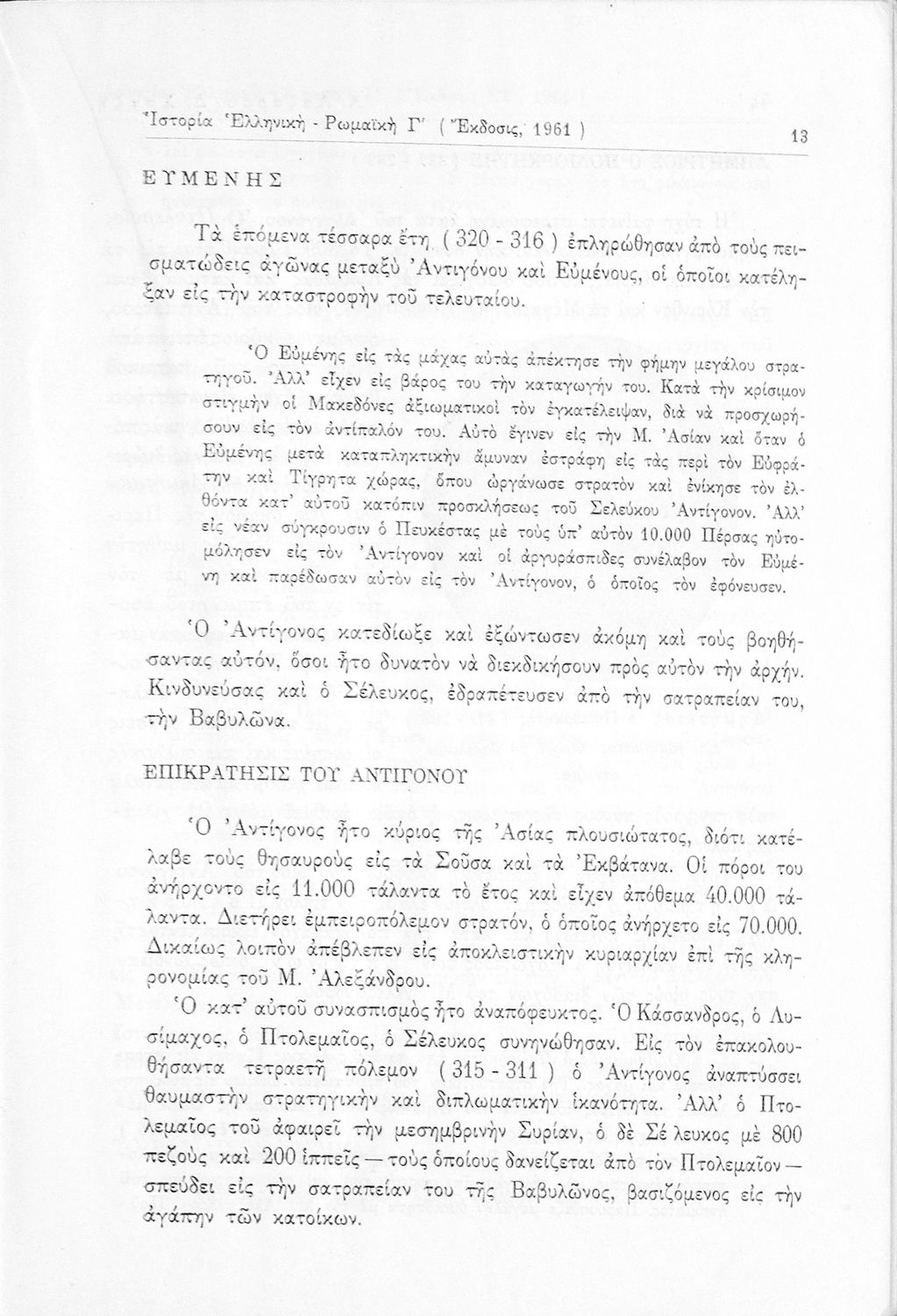 Σχολικό εγχειρίδιο Ιστορίας Γ΄ Γυμνασίου που καλύπτει την περίοδο από το θάνατο του Μ. Αλέξανδρου και τα ελληνιστικά βασίλεια ως την παρακμή της ρωμαϊκής αυτοκρατορίας. Περιέχει και παράρτημα με το μετρικό σύστημα των Ρωμαίων.