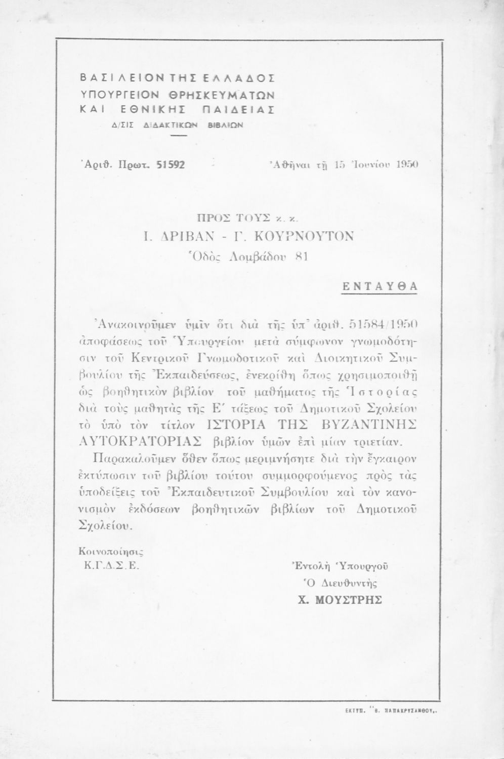 Υπουργική απόφαση / Σύμβαση: 51592/15-6-1950