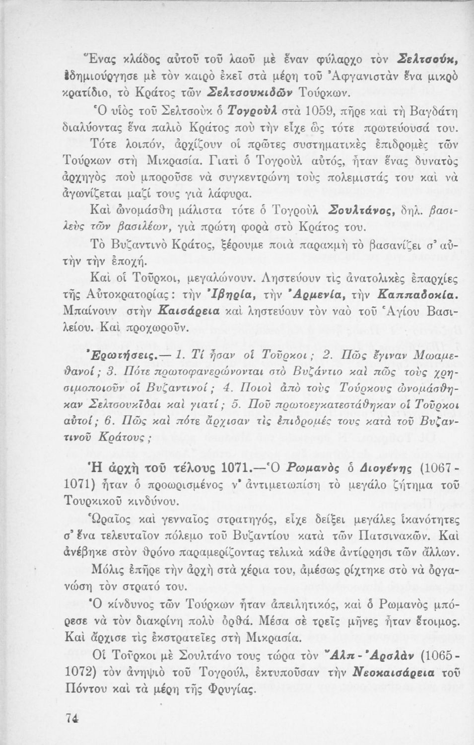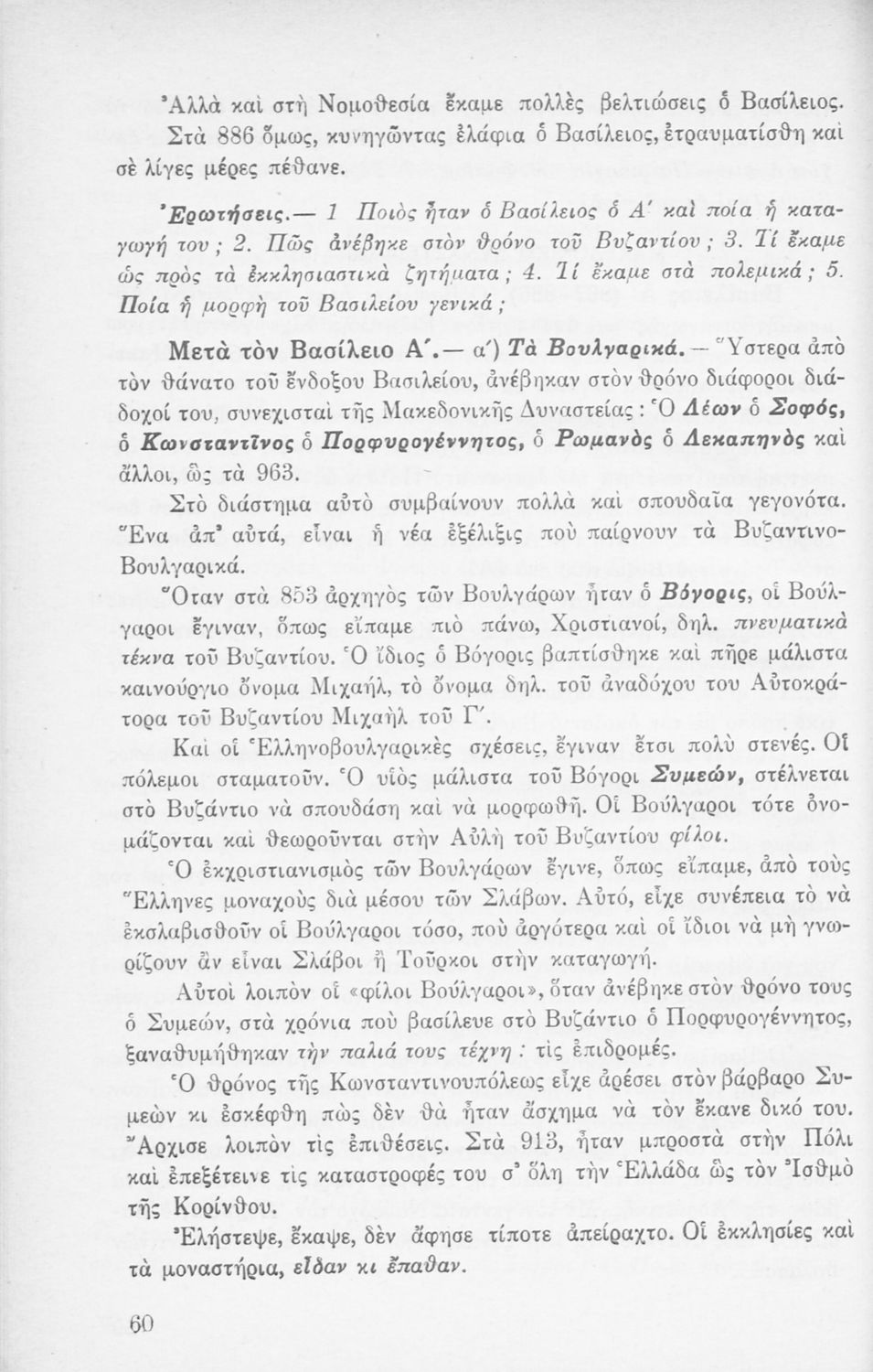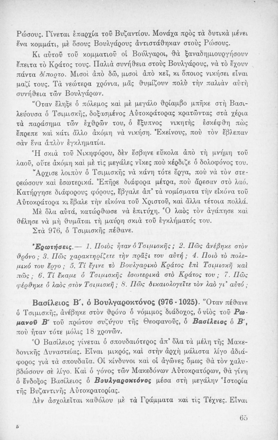 Βαθμίδα εκπαίδευσης: Πρωτοβάθμια Τάξη: Ε' Δημοτικού Μάθημα: Ιστορία Γλώσσα: Δημοτική με στοιχεία καθαρεύουσας Παρουσίαση περιεχομένου: Μαθητικό βοήθημα Ιστορίας για την Ε΄ Δημοτικού που καλύπτει την περίοδο από το 146 π.Χ ως την άλωση της Κωνσταντινούπολης και την Αναγέννηση. |