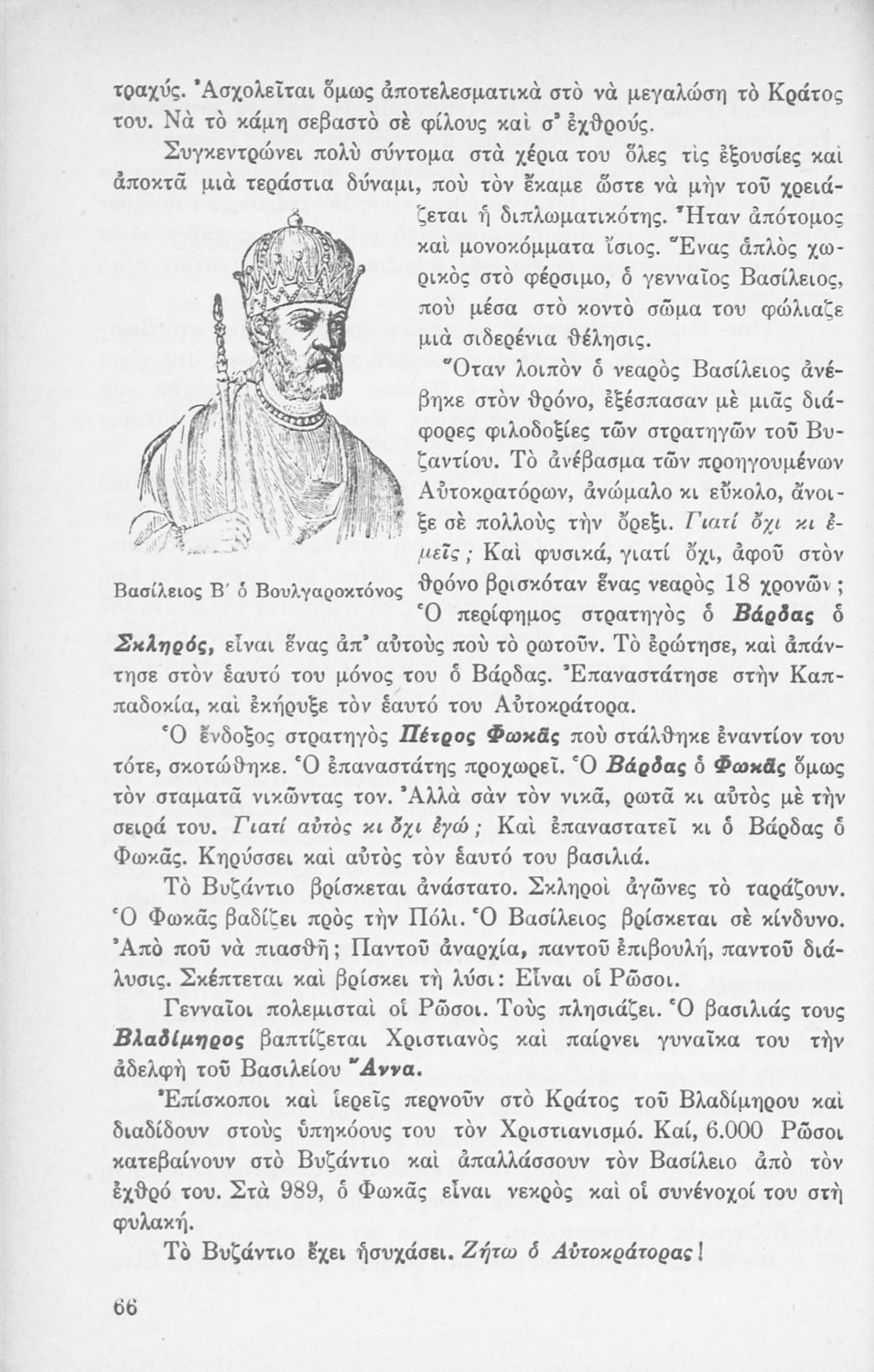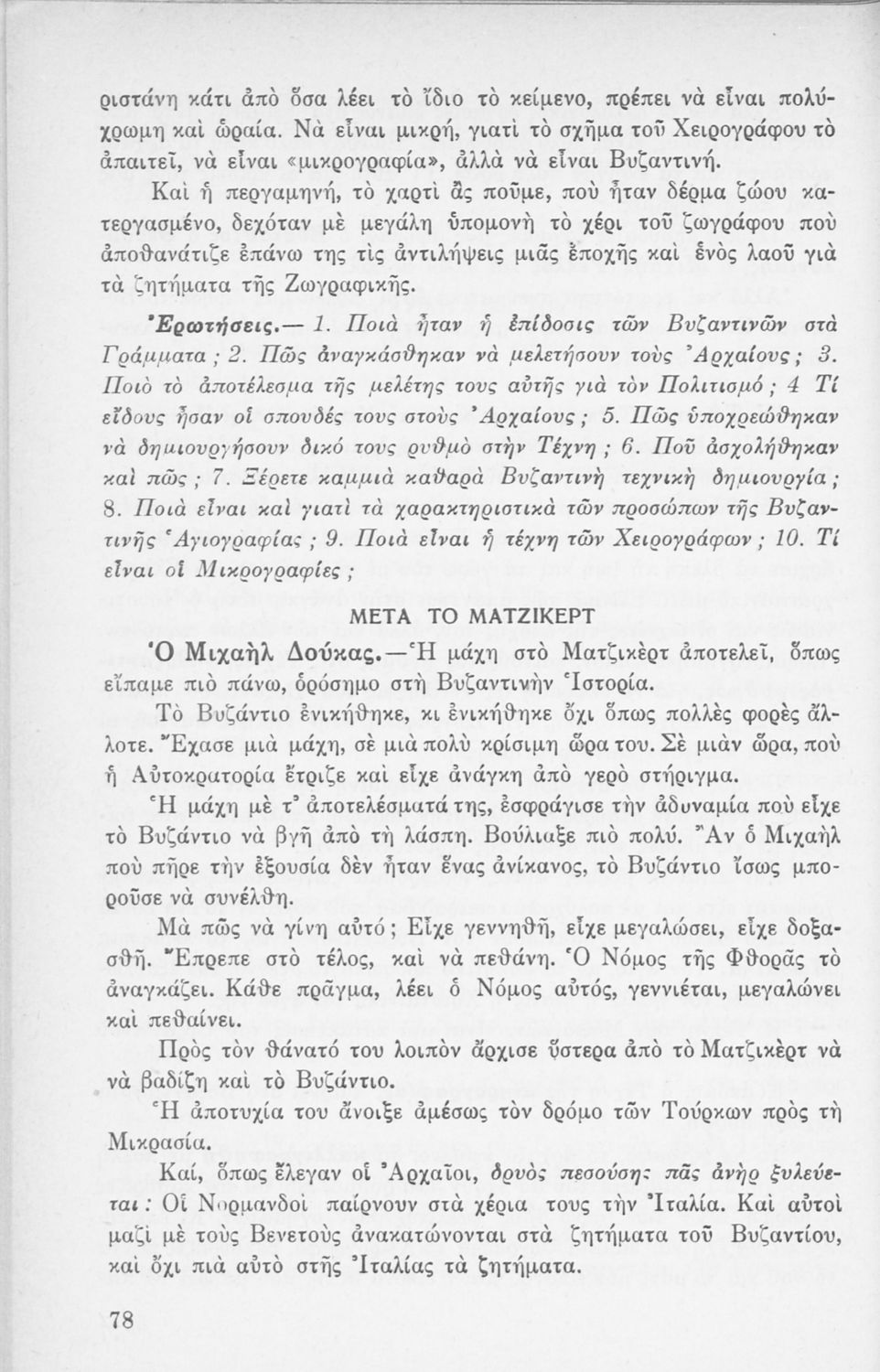 Κωδικός αναγνώρισης: 05-00218 Τίτλος: Βυζαντινή ιστορία δια την Ε΄ τάξιν του Δημοτικού Σχολείου Συγγραφέας: Γ. Π. Κουρνούτος, Ι. Γ. Δρίβας Μέγεθος και υπόστρωμα: Μαθητικό βοήθημα, μαλακό εξώφυλλο, 113 σελίδες. Εξώφυλλο (έγχρωμο), εικόνες (ασπρόμαυρες), χάρτες (ασπρόμαυροι). |