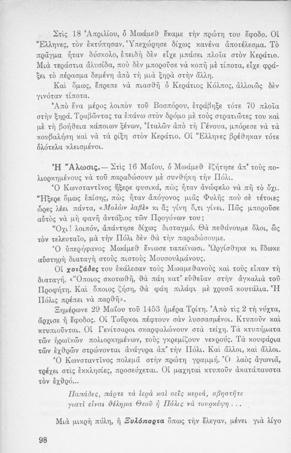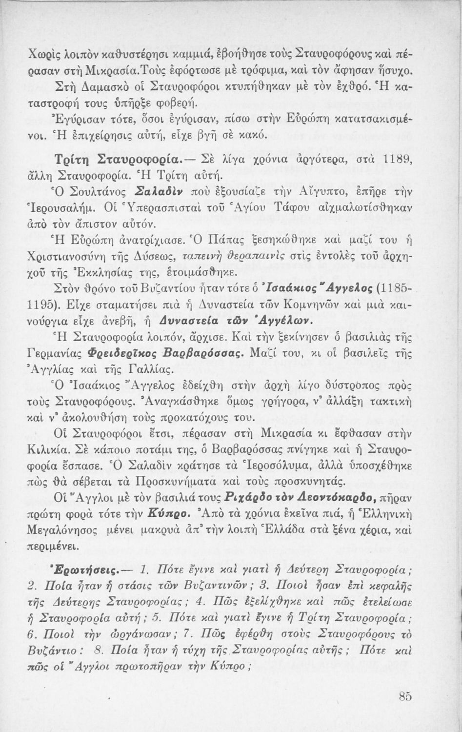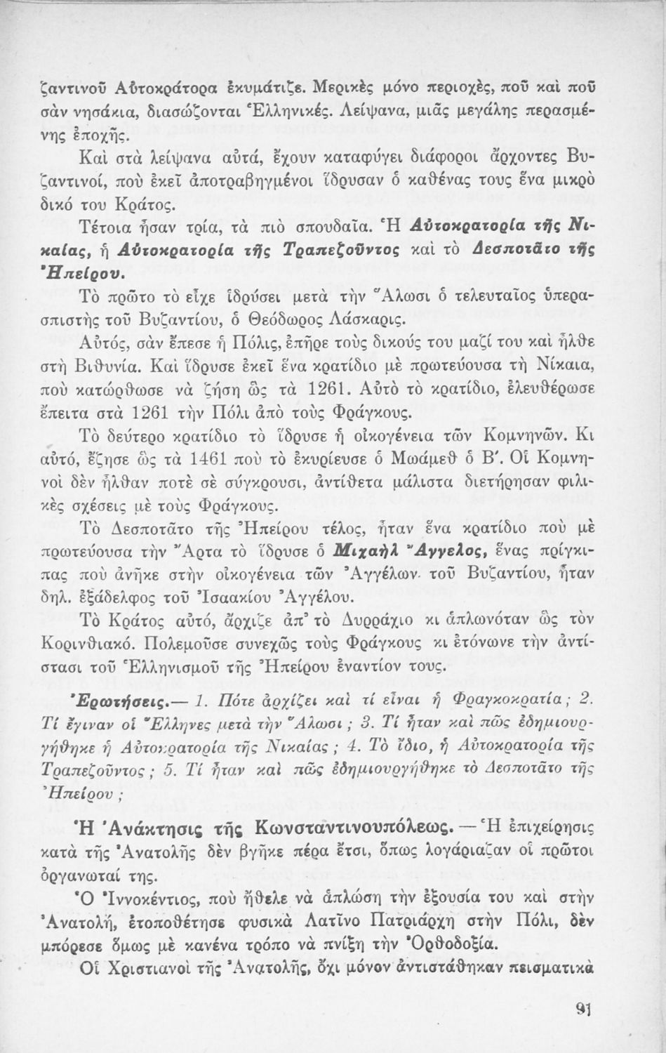 Βαθμίδα εκπαίδευσης: Πρωτοβάθμια Τάξη: Ε' Δημοτικού Μάθημα: Ιστορία Γλώσσα: Δημοτική με στοιχεία καθαρεύουσας Παρουσίαση περιεχομένου: Μαθητικό βοήθημα Ιστορίας για την Ε΄ Δημοτικού που καλύπτει την περίοδο από το 146 π.Χ ως την άλωση της Κωνσταντινούπολης και την Αναγέννηση. |